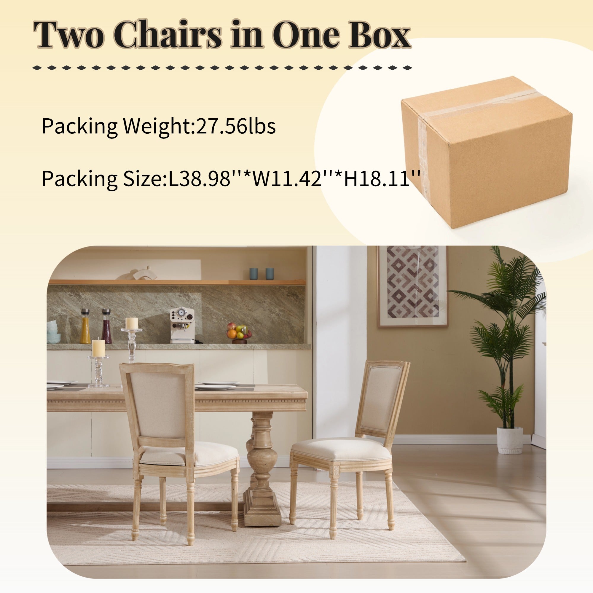Elevate your dining or living space with this refined pair of French Country dining chairs, blending classic craftsmanship with modern comfort. These upholstered chairs feature elegant carving details, a distinctive T-shaped back, and premium materials designed for everyday use in the dining room, kitchen, restaurant, or living area. They are thoughtfully engineered for comfort, durability, and easy assembly/storage without sacrificing style.