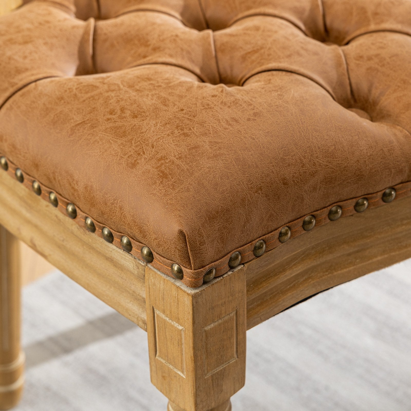 Elevate your dining space with this French-style solid wood dining chair, combining classic upholstery details with sturdy construction for everyday comfort and lasting appeal. Rich orange PU leather, hand-pulled buckle accents, and nailhead trim give each chair vintage character, while high-density cushioning and a robust inner spring system provide exceptional support. Sold as a set of 2, these chairs make a stylish and practical addition to dining rooms, kitchens, or accent seating areas.