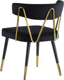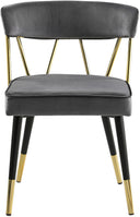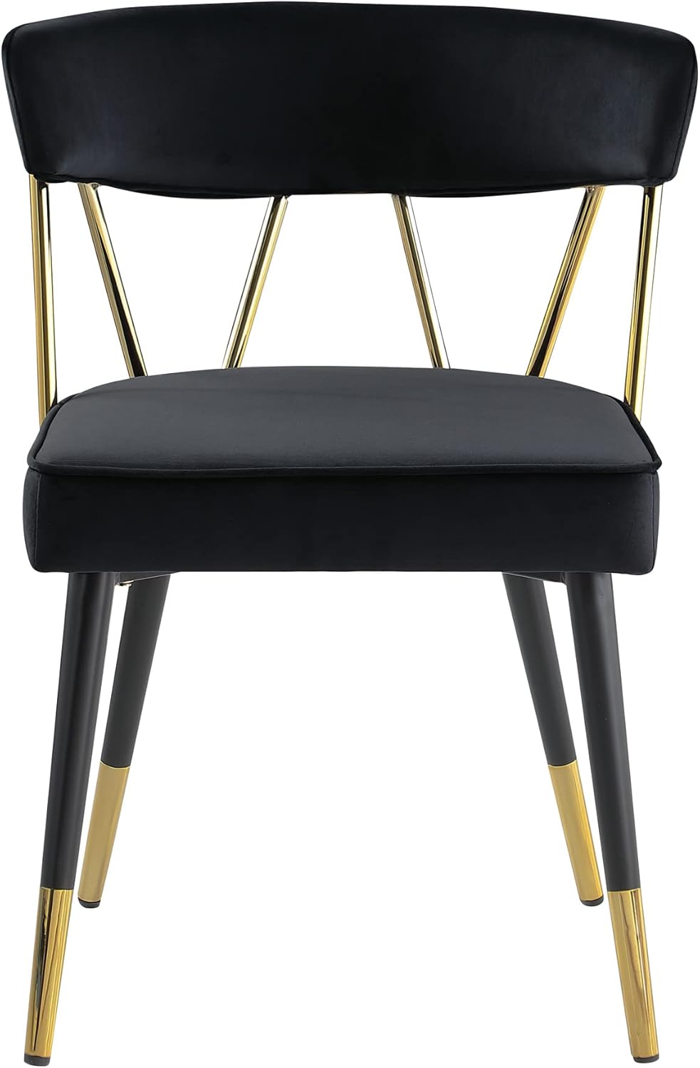 Elevate your dining or seating area with this glamorous set of two velvet dining chairs. Soft, plush upholstery and a sleek gold-trimmed frame combine modern elegance with everyday comfort—perfect for dining rooms, breakfast nooks, or as stylish accent chairs in a bedroom or office. The foam-padded seat and supportive back deliver medium-firm comfort, while the compact footprint makes these chairs easy to arrange in a variety of spaces.