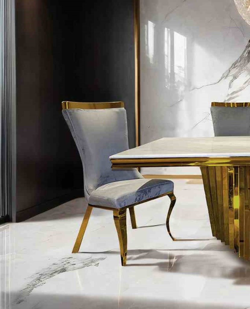 - Frame & Legs: Gold-finished metal legs for stability and a glam accent
