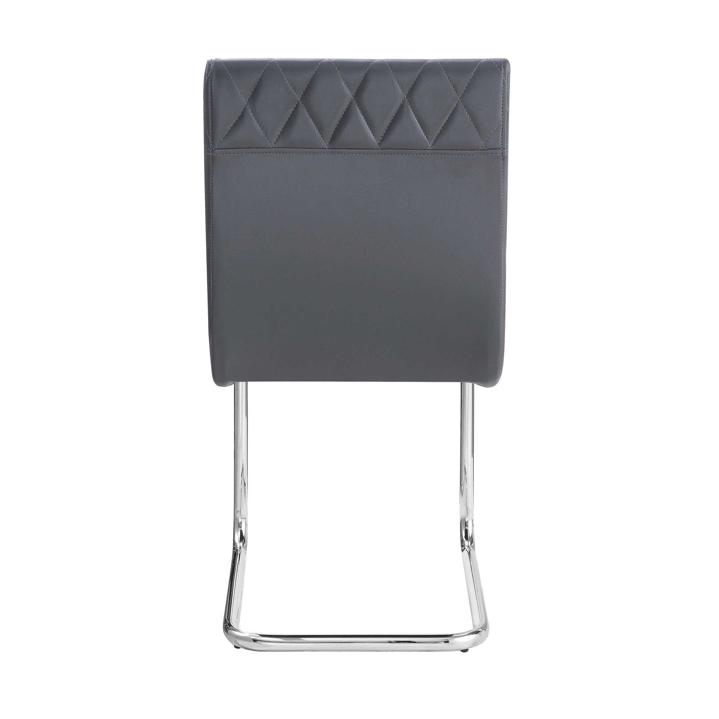 Bring contemporary elegance and comfort to your dining space with this pair of armless high-back side chairs. Thoughtfully designed with a quilted faux-leather upholstery and a polished chrome sled base, these chairs balance modern style with durable construction—ideal for everyday use or special gatherings.