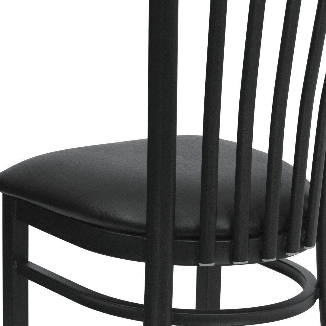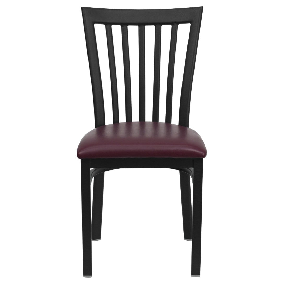 Give your dining space a classic, durable upgrade with this heavy-duty metal restaurant chair. Designed for high-traffic environments yet refined enough for home use, it pairs a timeless school house back silhouette with a thickly padded vinyl seat for lasting comfort and easy maintenance. Built with commercial-grade materials and reinforced construction, this chair delivers dependable performance, attractive styling, and practical features that protect both guests and floors.