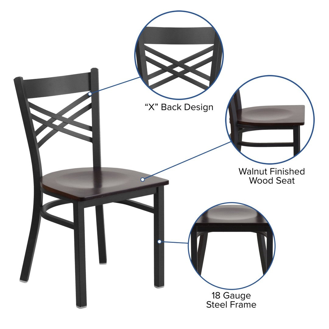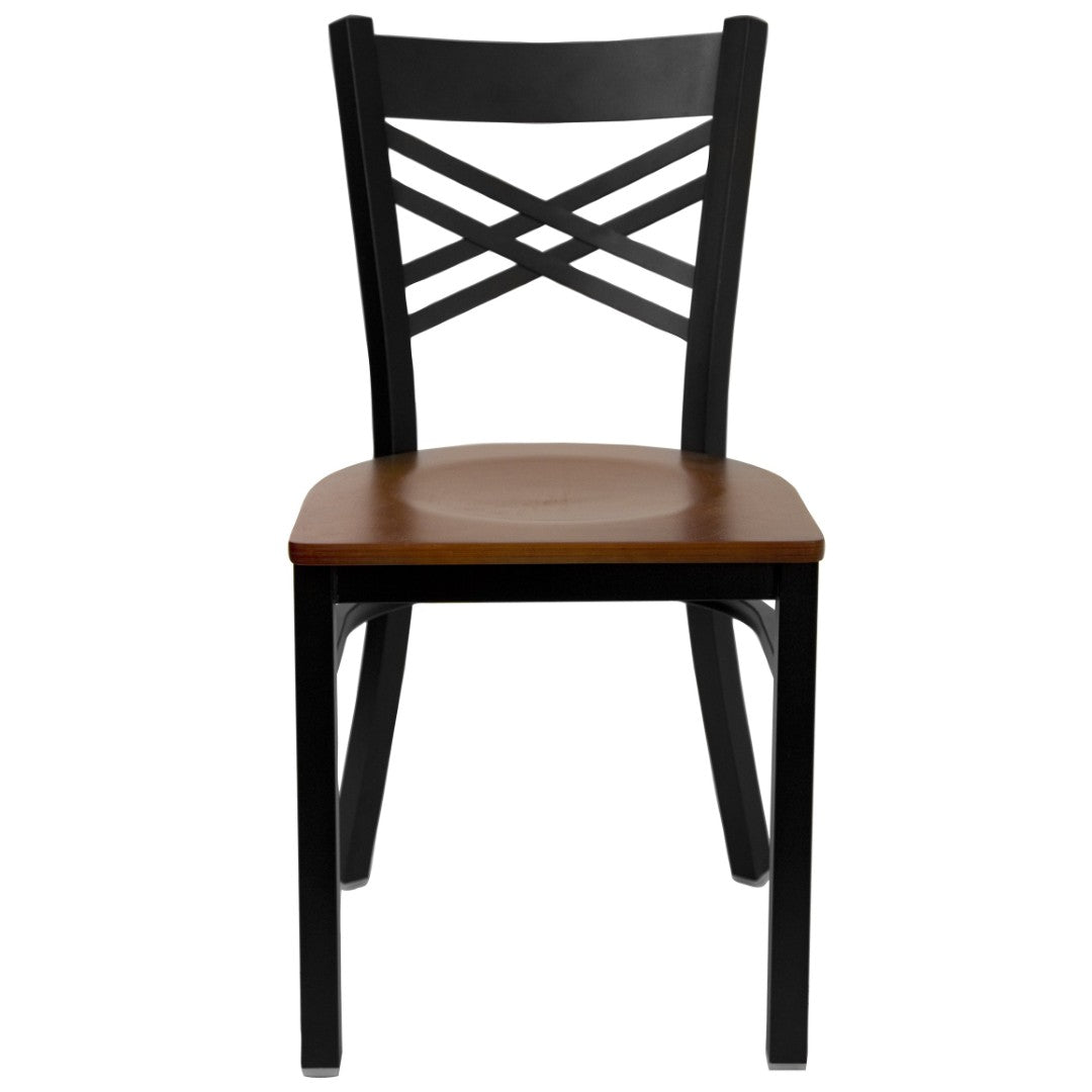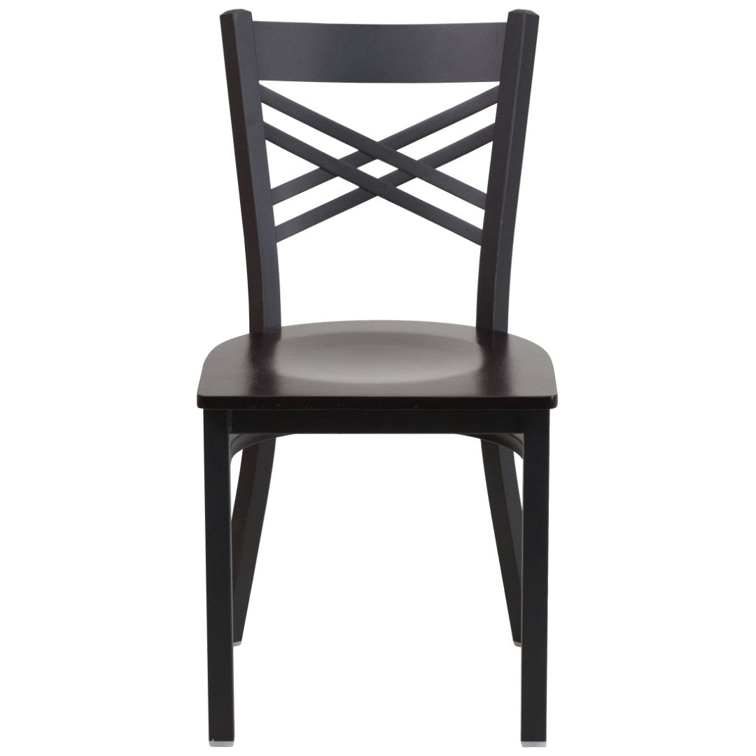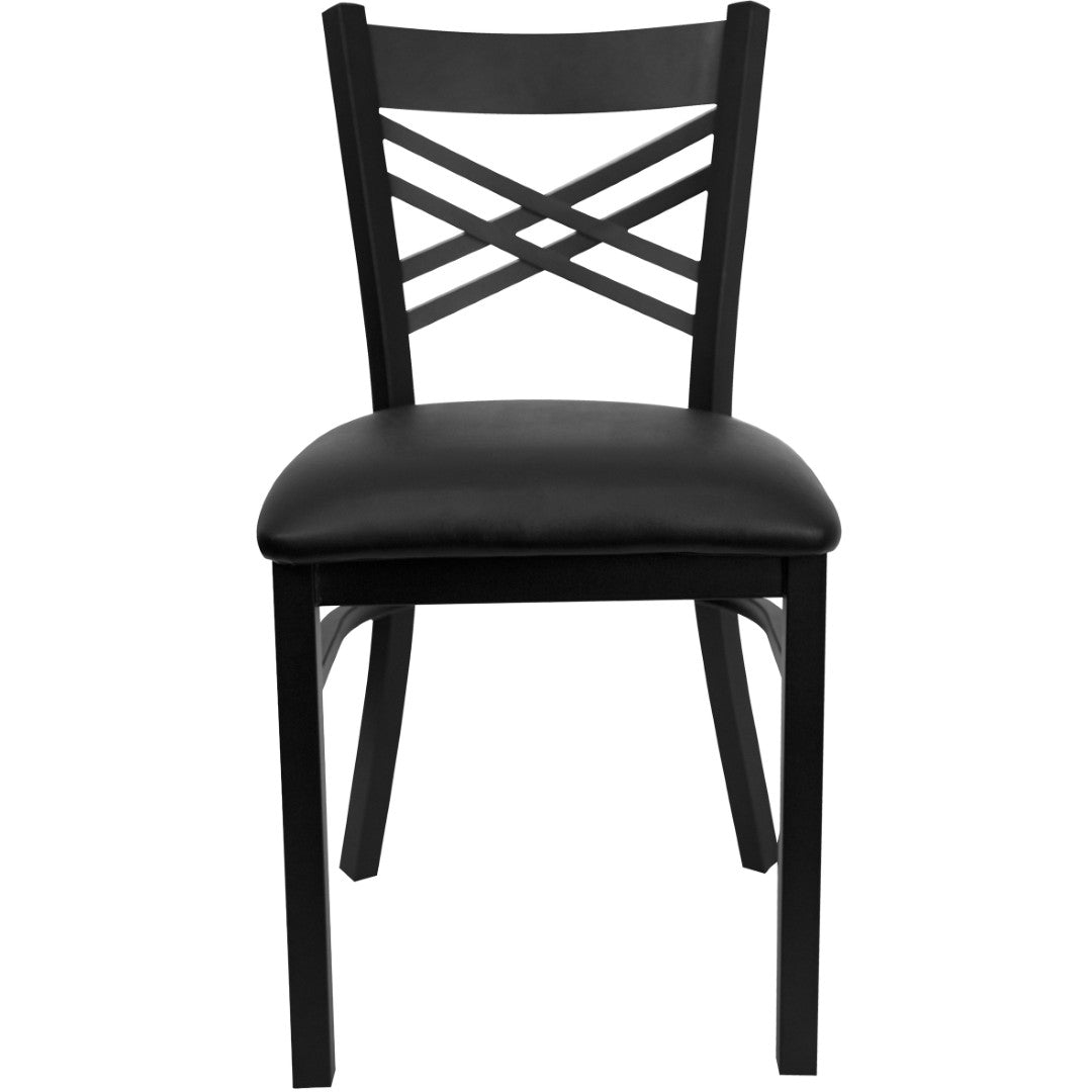 Upgrade your dining space with a durable, comfortable chair designed for both commercial and residential use. This metal "X" back chair combines a clean, modern silhouette with practical features—easy to maintain, built to handle high-traffic environments, and finished for long-lasting performance. Ideal for restaurants, cafes, bars, banquet halls, or a busy home kitchen, it balances sturdy construction with guest comfort.
