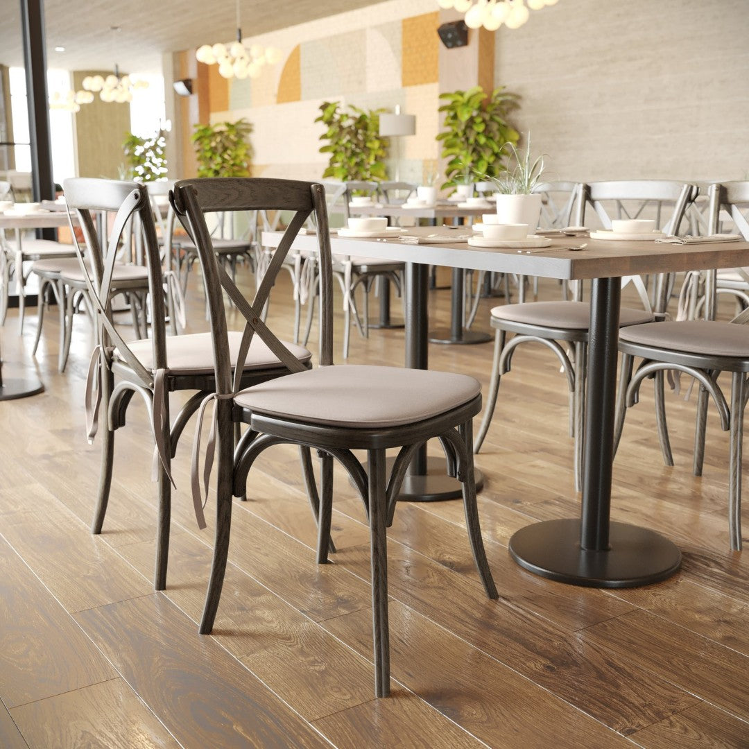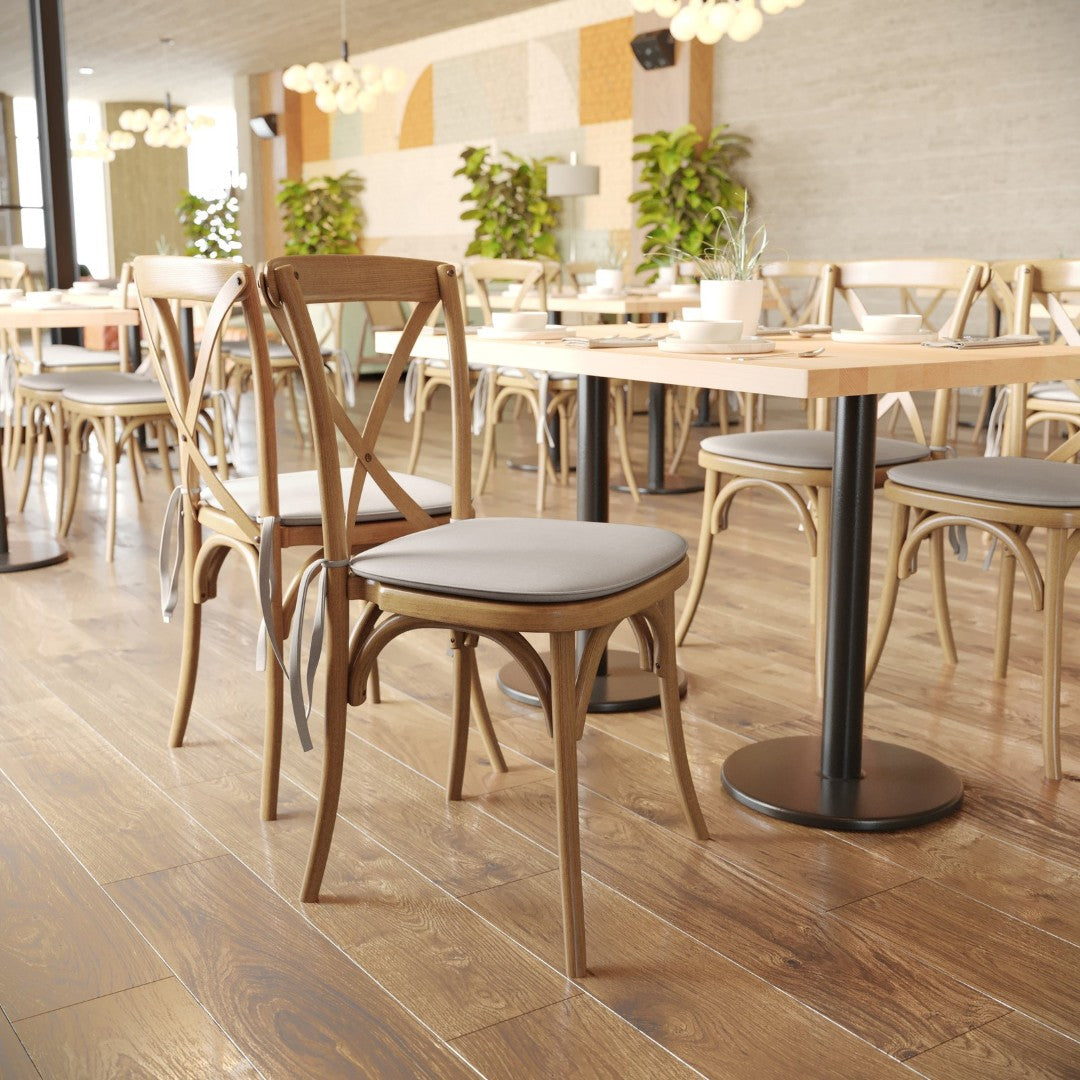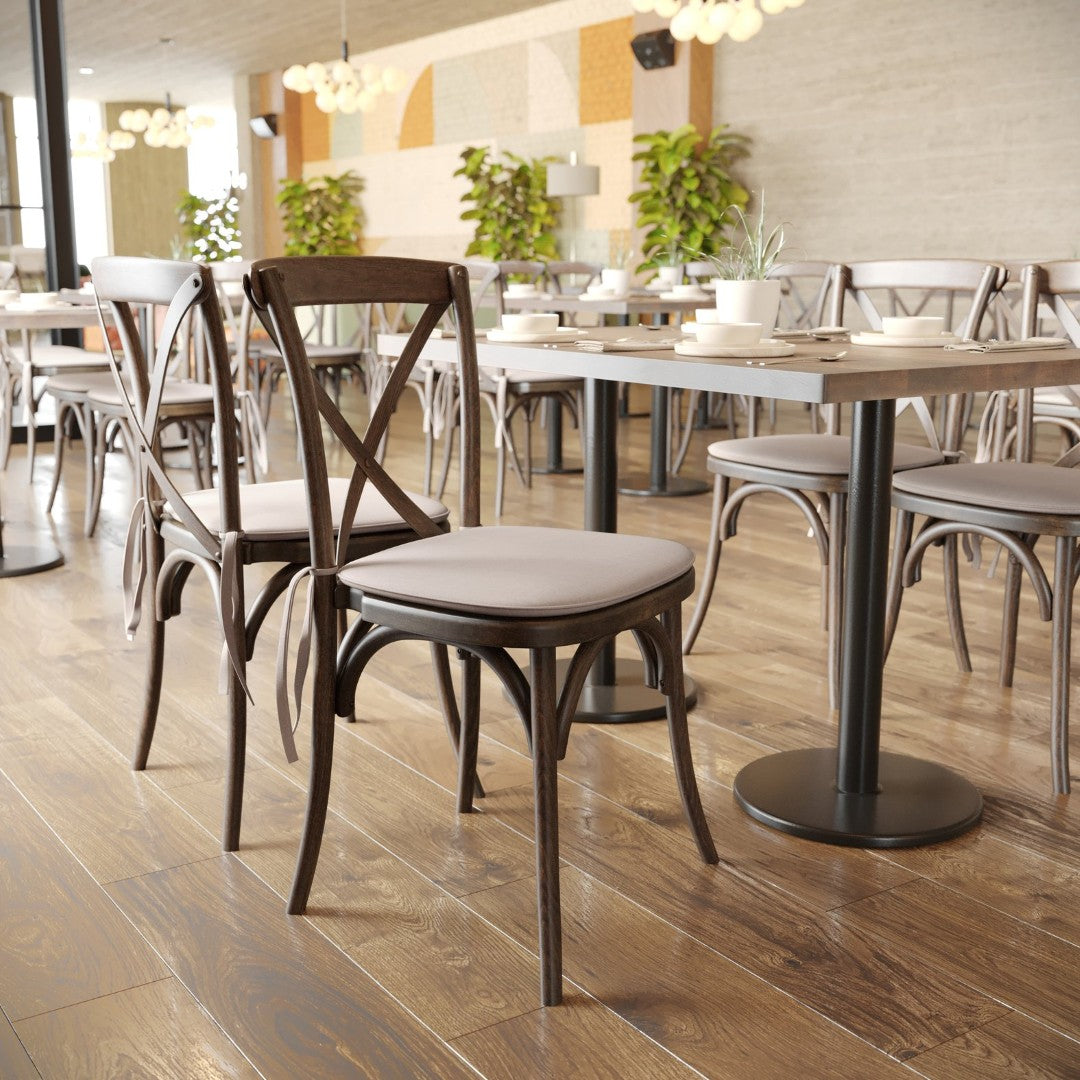 Bring classic charm and practical performance to your dining area or hospitality space with this Early American cross-back chair. Its graceful curved silhouette and designer cross back deliver timeless style, while the supportive cushion and solid ash construction provide lasting comfort and strength—ideal for both residential and commercial settings.