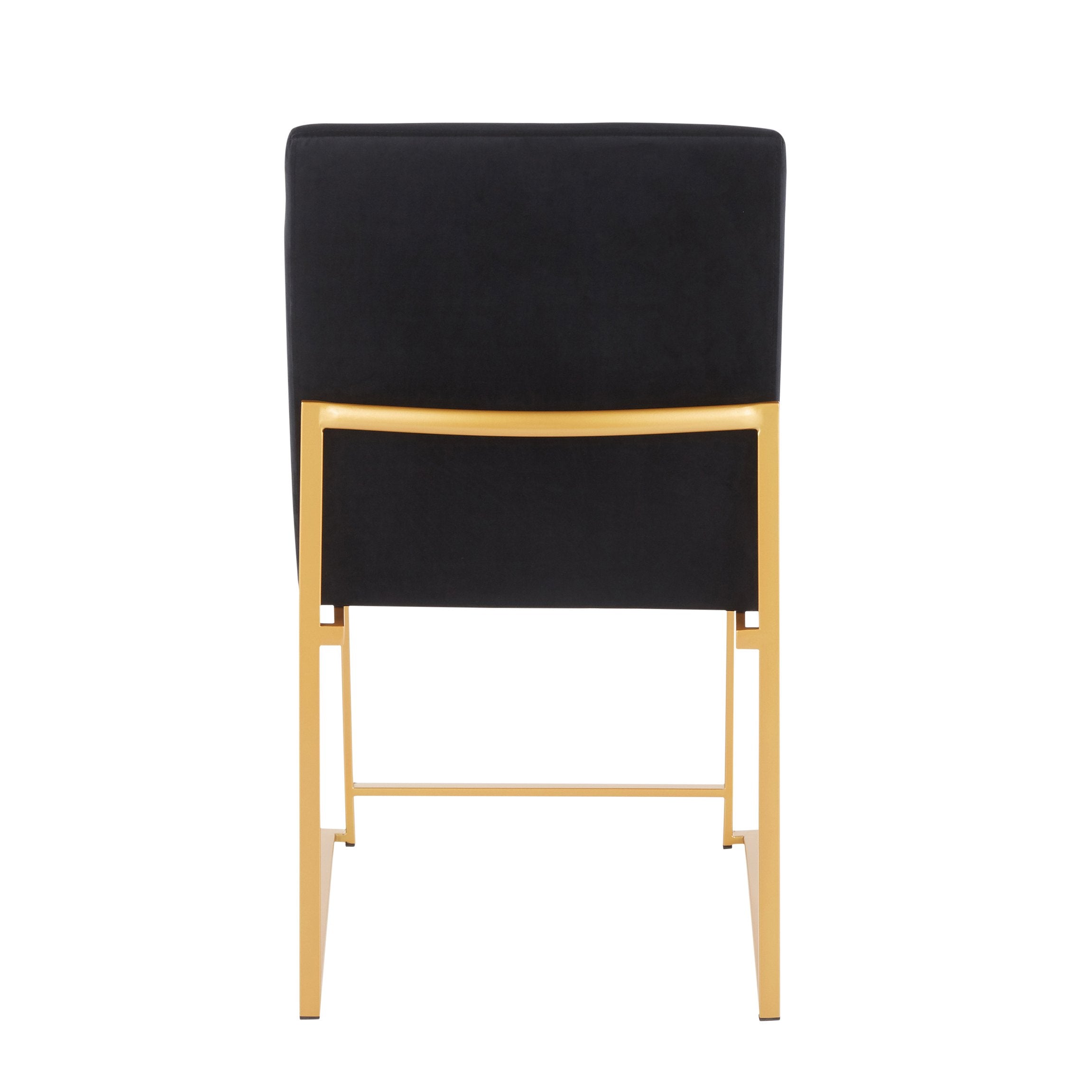 Elevate your dining or living space with the Fuji High Back contemporary dining chairs — a refined blend of luxurious comfort and striking modern design. These chairs pair plush black velvet upholstery with a sleek gold metal frame to create a versatile seating solution that works equally well around a dining table, as accent seating in a living room, or as a stylish office chair.