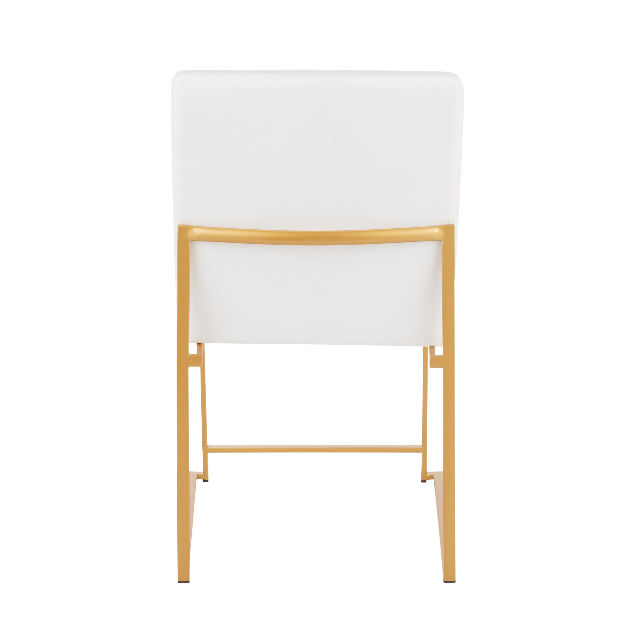 Bring modern glamour to your dining room or office with these high-back Fuji chairs. Upholstered in plush white velvet and supported by a sleek gold metal frame, each chair combines comfort and contemporary style—ideal as dining seating, extra guest chairs, or chic office seating.