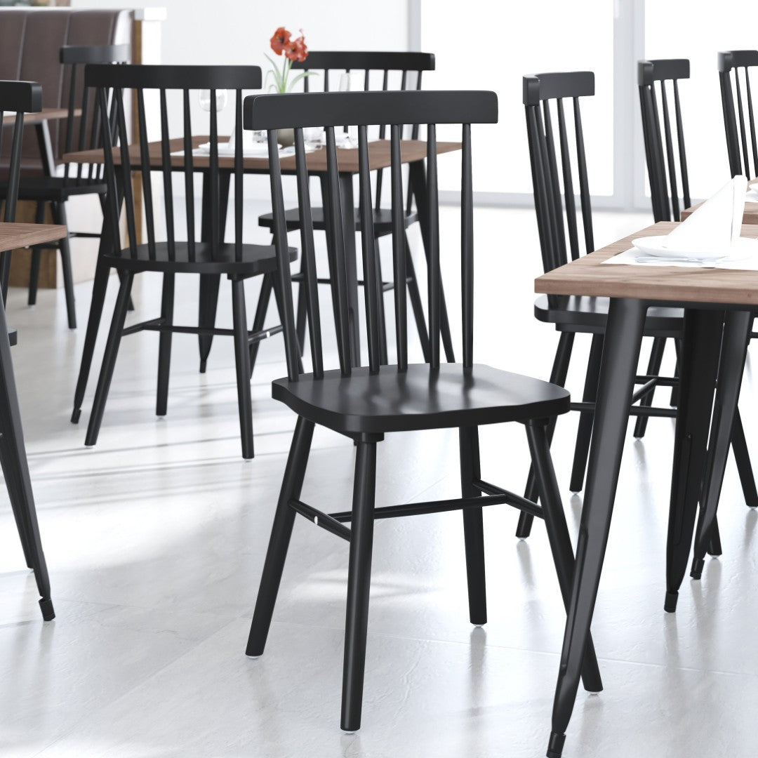 Refresh your space with timeless Windsor styling and commercial-grade durability. These armless spindle-back chairs blend classic schoolhouse charm with cottage comfort, offering a polished high-gloss finish and a saddled seat for extended comfort. Built from premium solid rubberwood, they’re designed for both busy hospitality environments and everyday residential use—easy to clean, low-maintenance, and ready to use right out of the box.