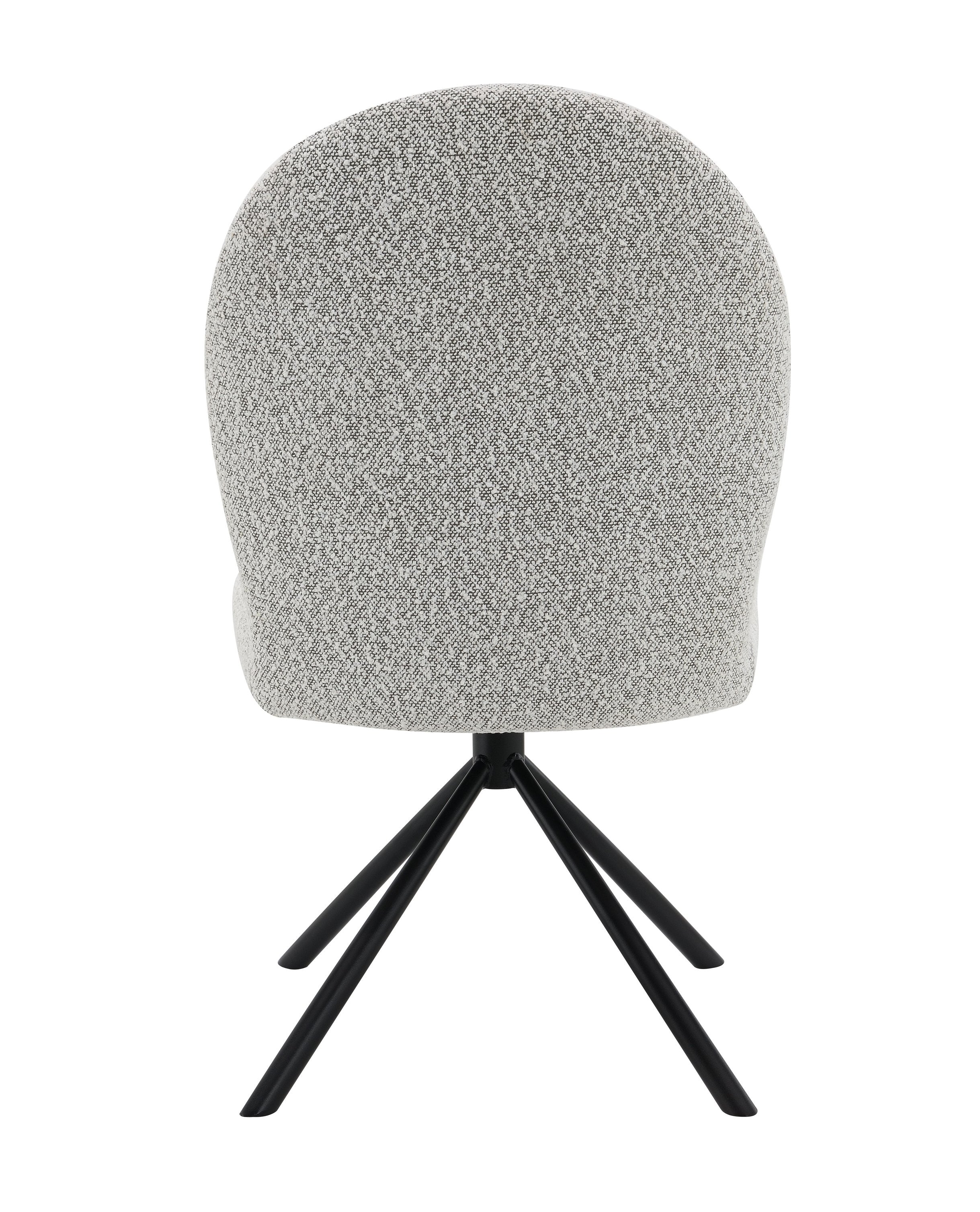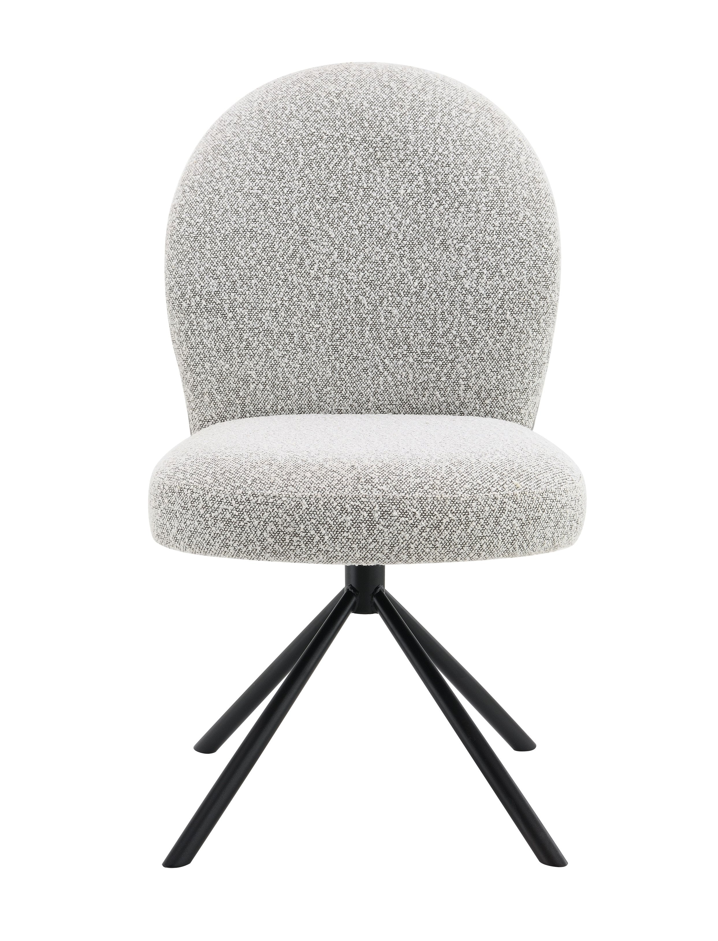 Elevate your dining or workspace with this pair of modern, comfortable swivel side chairs. Upholstered in soft gray boucle, these chairs blend tactile luxury with clean, contemporary lines. The foam-padded seat and back deliver everyday comfort, while the sturdy black metal frame and 180° swivel add stability and versatility—ideal for dining rooms, home offices, or living areas seeking a refined yet functional seating solution.