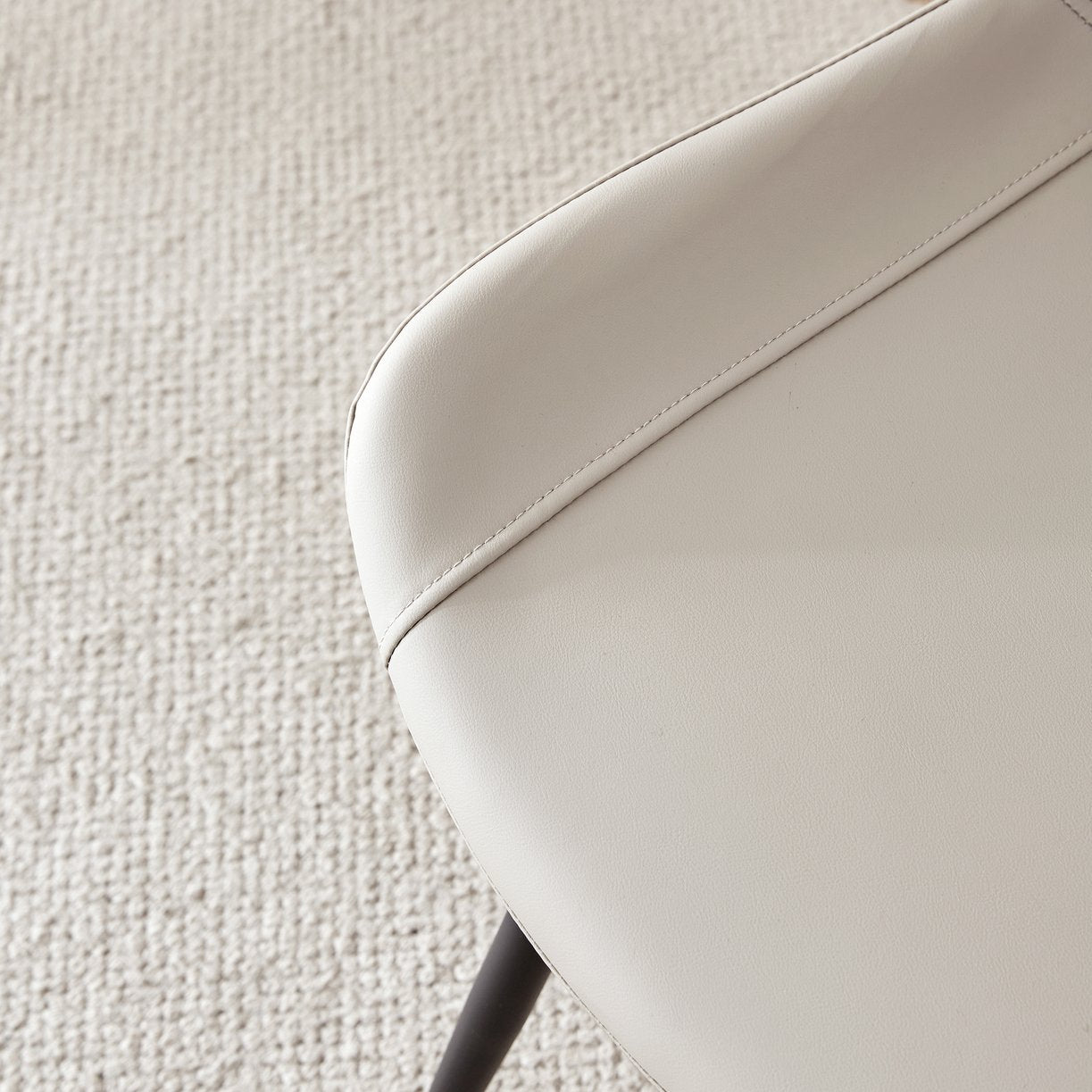 Modern comfort meets minimalist style in this light gray faux leather dining chair. Thoughtfully designed for everyday use in homes and commercial settings alike, it pairs a gently curved, widened cushion with sturdy black metal legs to deliver supportive seating with contemporary appeal. Ideal for dining rooms, kitchens, offices, bedrooms, or restaurants, this chair balances easy maintenance and refined looks for versatile placement.
