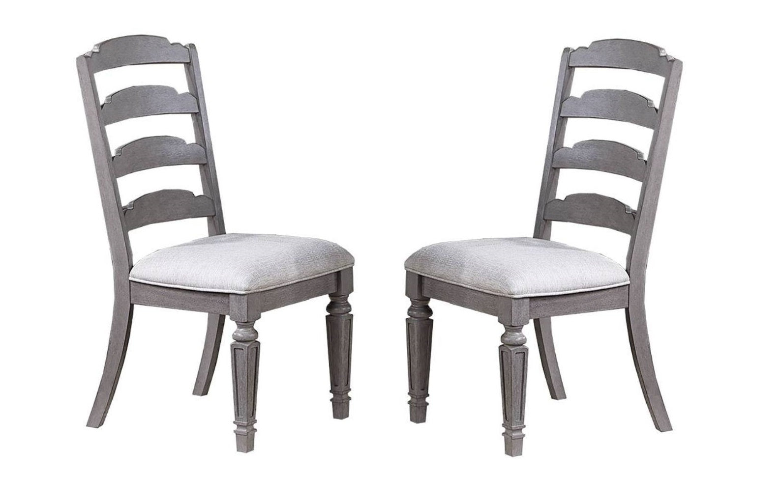Bring effortless comfort and timeless style to your dining area with this set of two contemporary ladder-back side chairs. Upholstered seats and a supportive wooden ladder-back combine for long-lasting comfort, while the light grey finish and clean lines complement modern and transitional décor. These chairs are ideal for everyday family meals, entertaining guests, or adding extra seating to a kitchen nook.