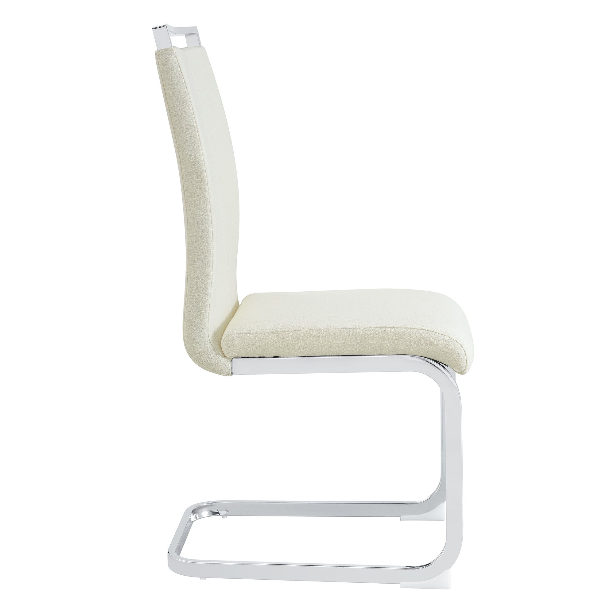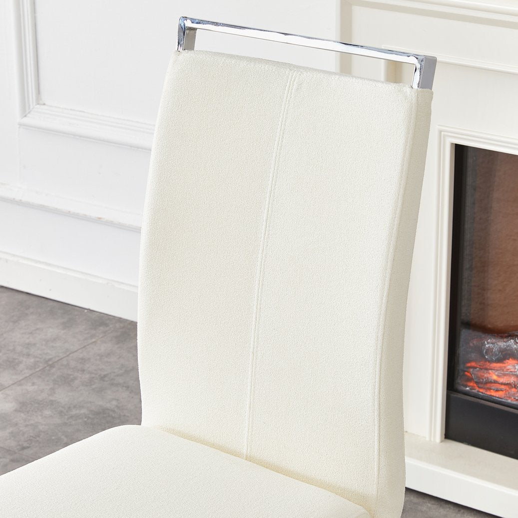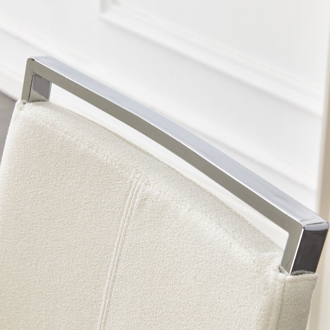- Color & Finish: White grainy fabric upholstery with silver metal legs for a versatile, high-end appearance.