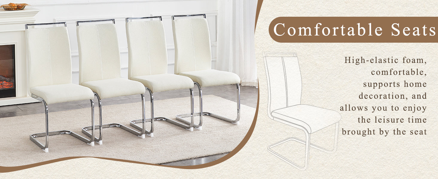 Elevate your dining space with these luxury-style chairs that blend comfort, durability, and modern elegance. Upholstered in a soft, grainy velvet-like fabric and supported by silver metal bow-shaped legs, these chairs offer a refined look that complements contemporary, Scandinavian, and minimalist interiors while delivering a comfortable, breathable seating experience for daily use or entertaining.