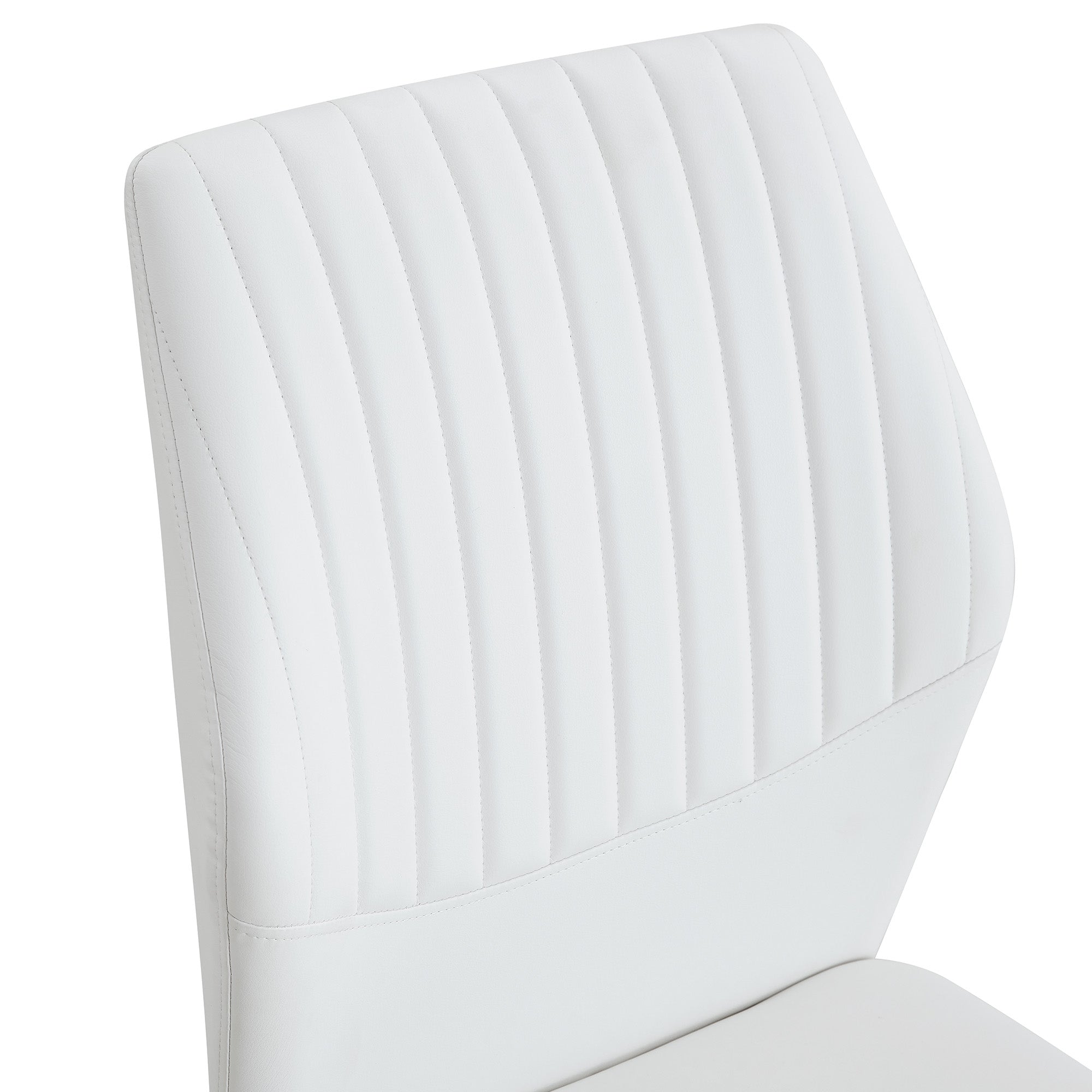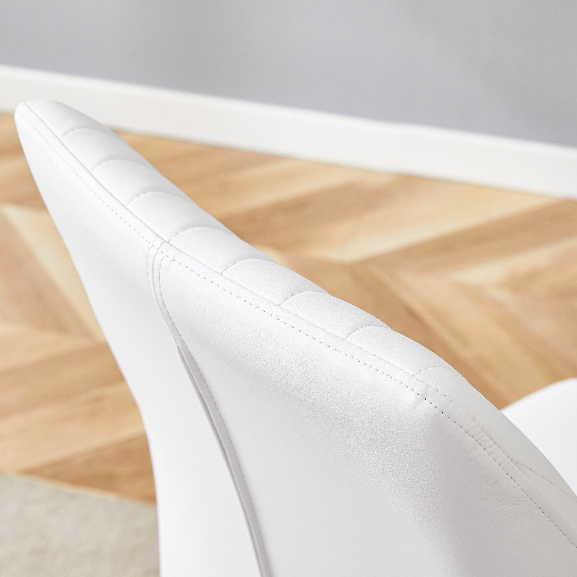 - Material application: The backrest and seat cushion are made of white PU synthetic leather material, which has good wear resistance and faux leather texture, giving the chair a delicate appearance and easy daily cleaning and maintenance; Internally filled with high-density sponge to ensure a comfortable sitting experience and excellent resilience, effectively relieving the pressure of prolonged sitting.