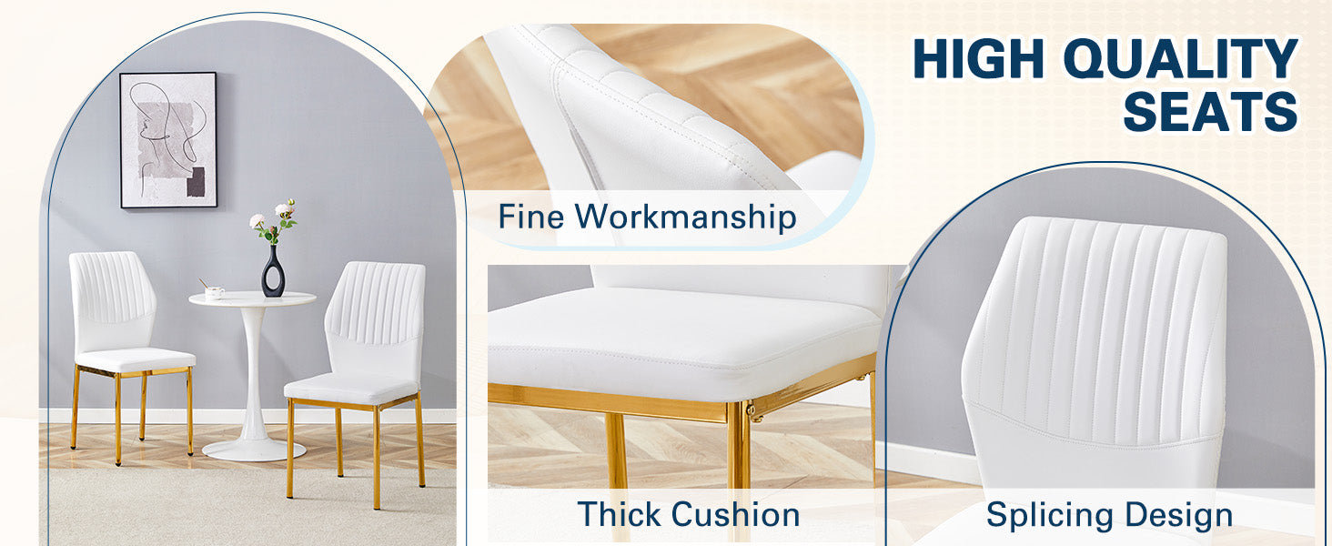 - Premium materials: White PU synthetic leather for seat and back—wear-resistant, easy to clean, with a faux-leather texture for a refined look; sturdy metal legs with a gold finish for lasting support and visual appeal.