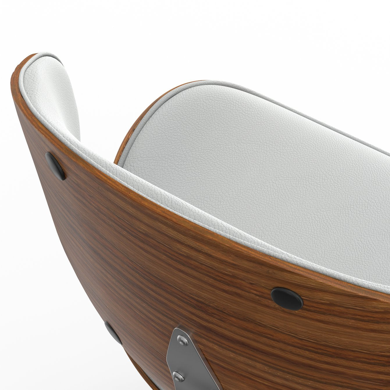 - Frame & Support: Bentwood frame with walnut veneer and a metal back support bar for added durability and visual contrast.
