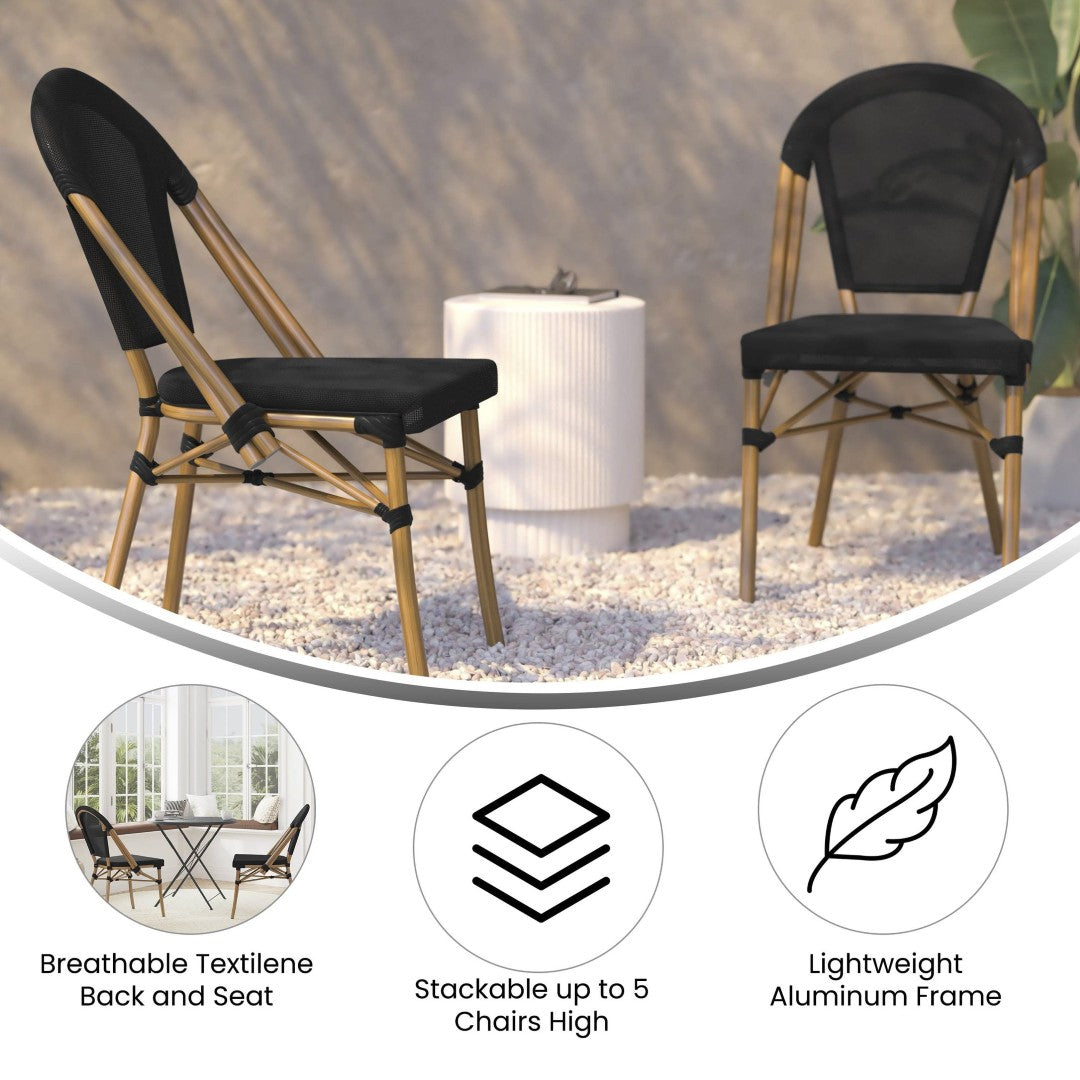 - Distinctive finish: Natural bamboo-print aluminum frame provides an elegant, café-style look that complements indoor and outdoor settings.