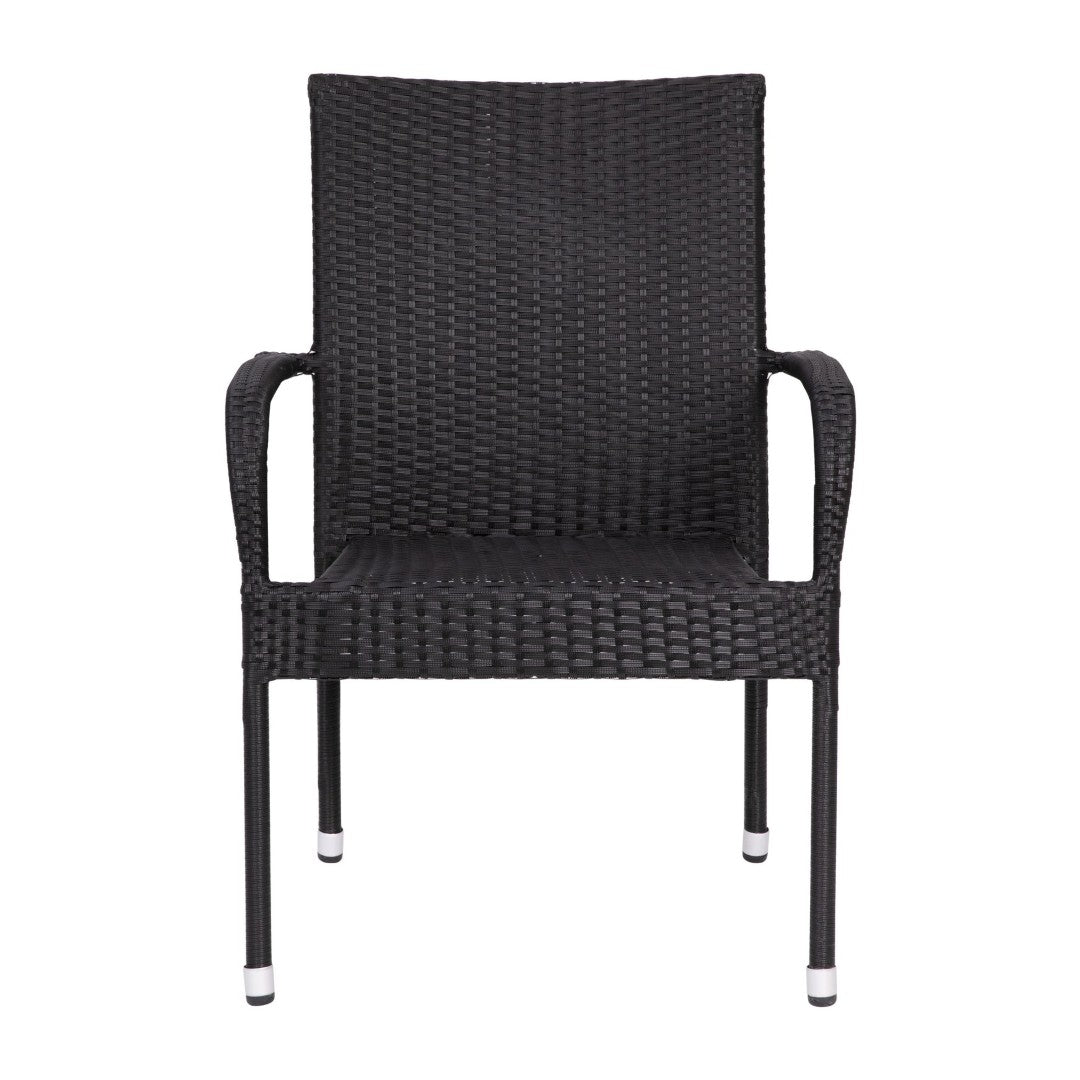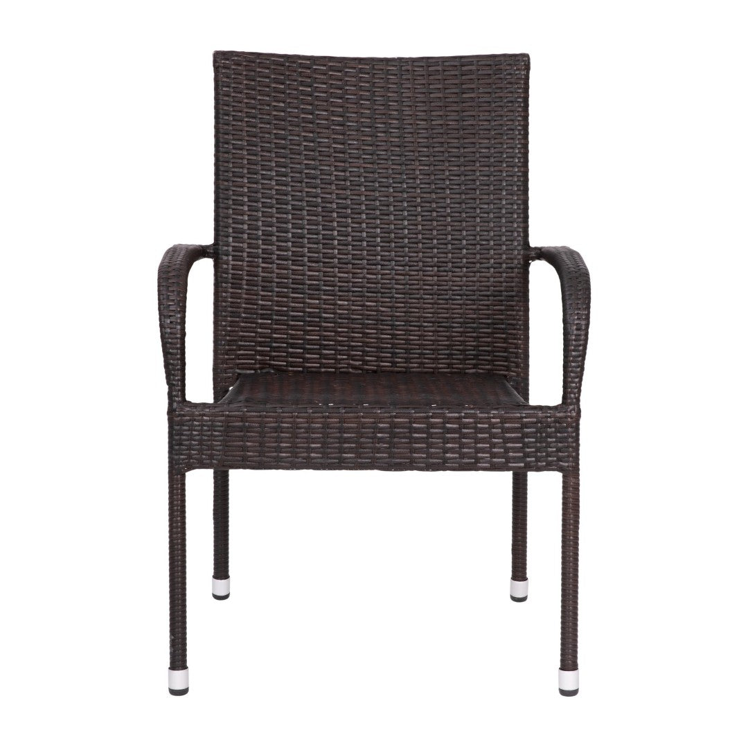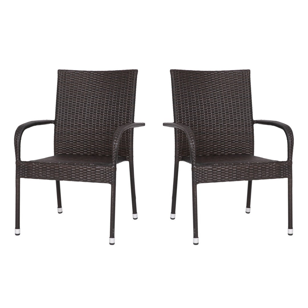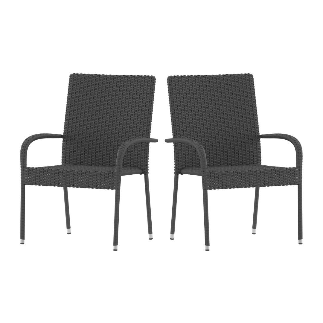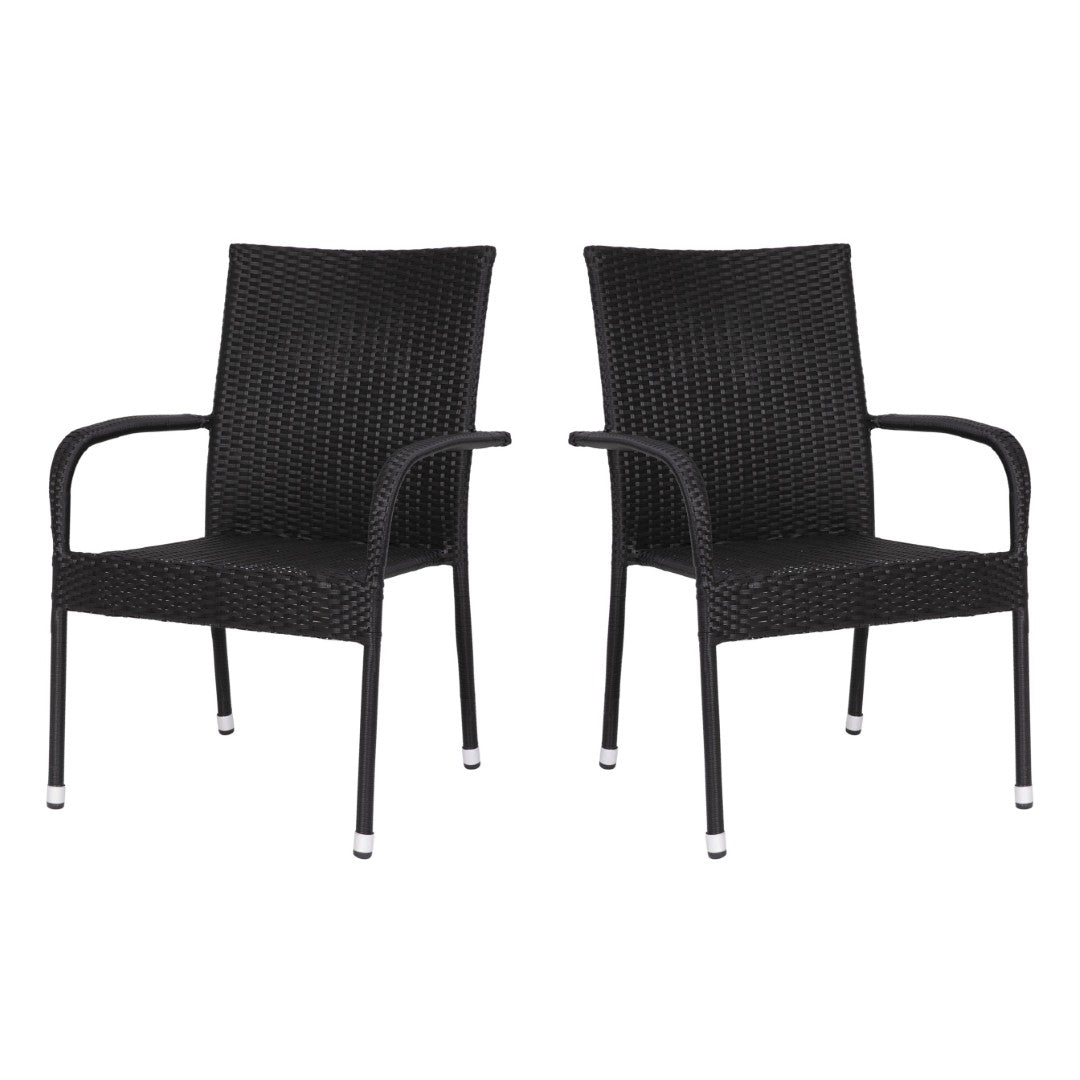 - Modern Indoor/Outdoor Stackable Wicker Patio Chairs with Arms - Set of 2