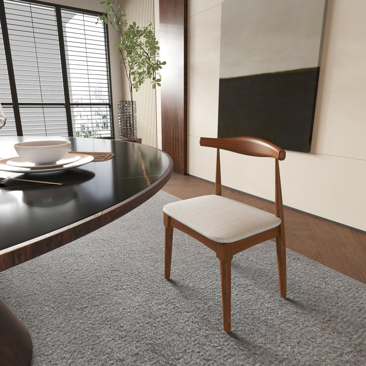 Elevate your dining space with these Mid-Century inspired chairs that blend classic walnut wood craftsmanship with a light grey upholstered seat for a refined, comfortable look. Designed for everyday use, they offer ergonomic support, durable construction, and a versatile aesthetic that suits dining rooms, kitchens, cafes, and workspaces alike.