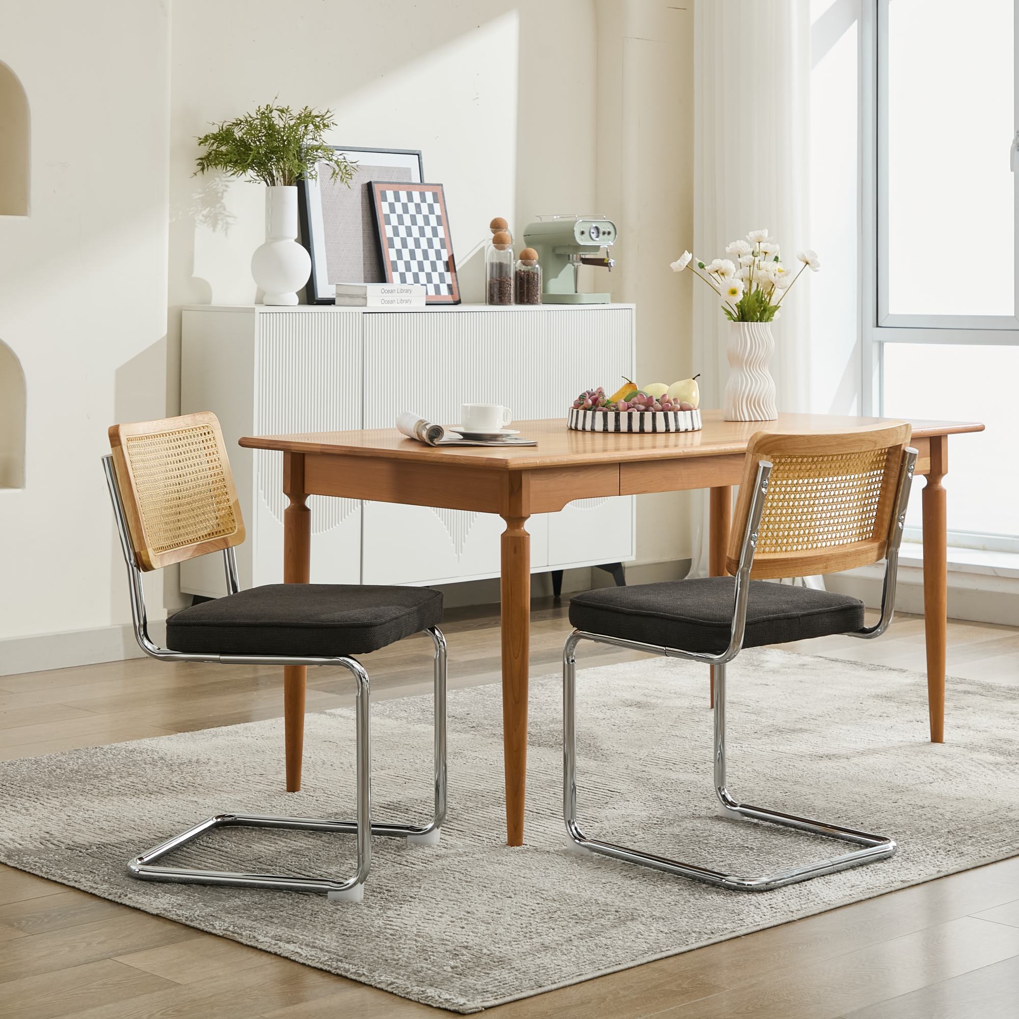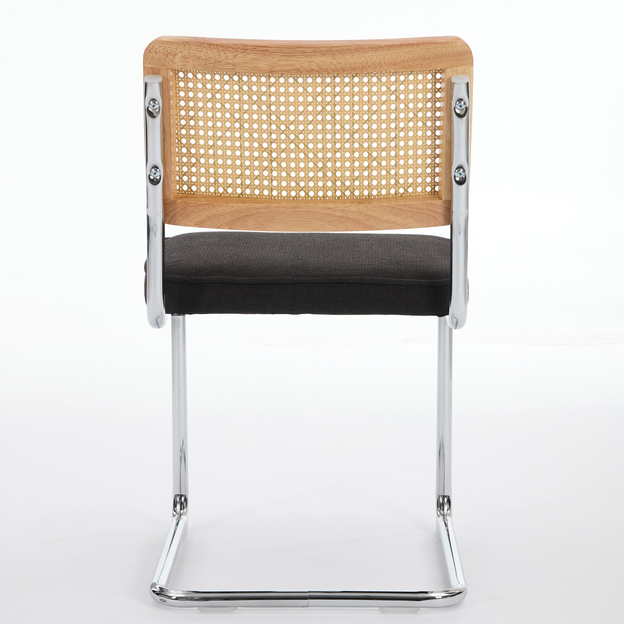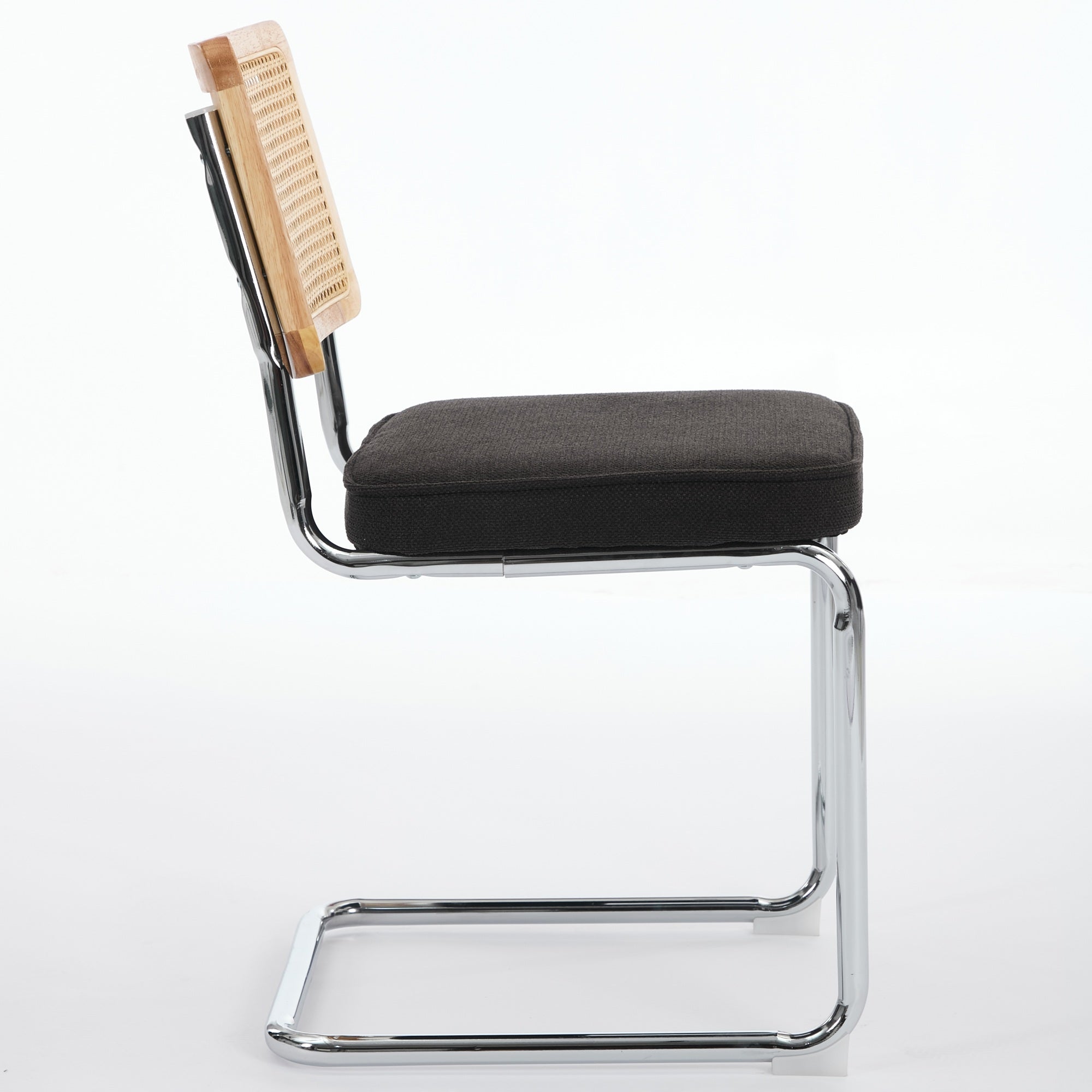 Elevate your dining or living space with these Mid Century Modern accent chairs that blend iconic Breuer-inspired design with contemporary comfort. Expertly crafted with a natural hand-woven rattan back, plush velvet-like linen upholstery, and a polished stainless chrome cantilever base, these chairs offer breathable support, a subtle springy recline, and durable construction for everyday use. Ideal as dining chairs, kitchen accent seats, or stylish additions to a reading nook, they deliver a refined silhouette and tactile richness that complements a range of interiors.
