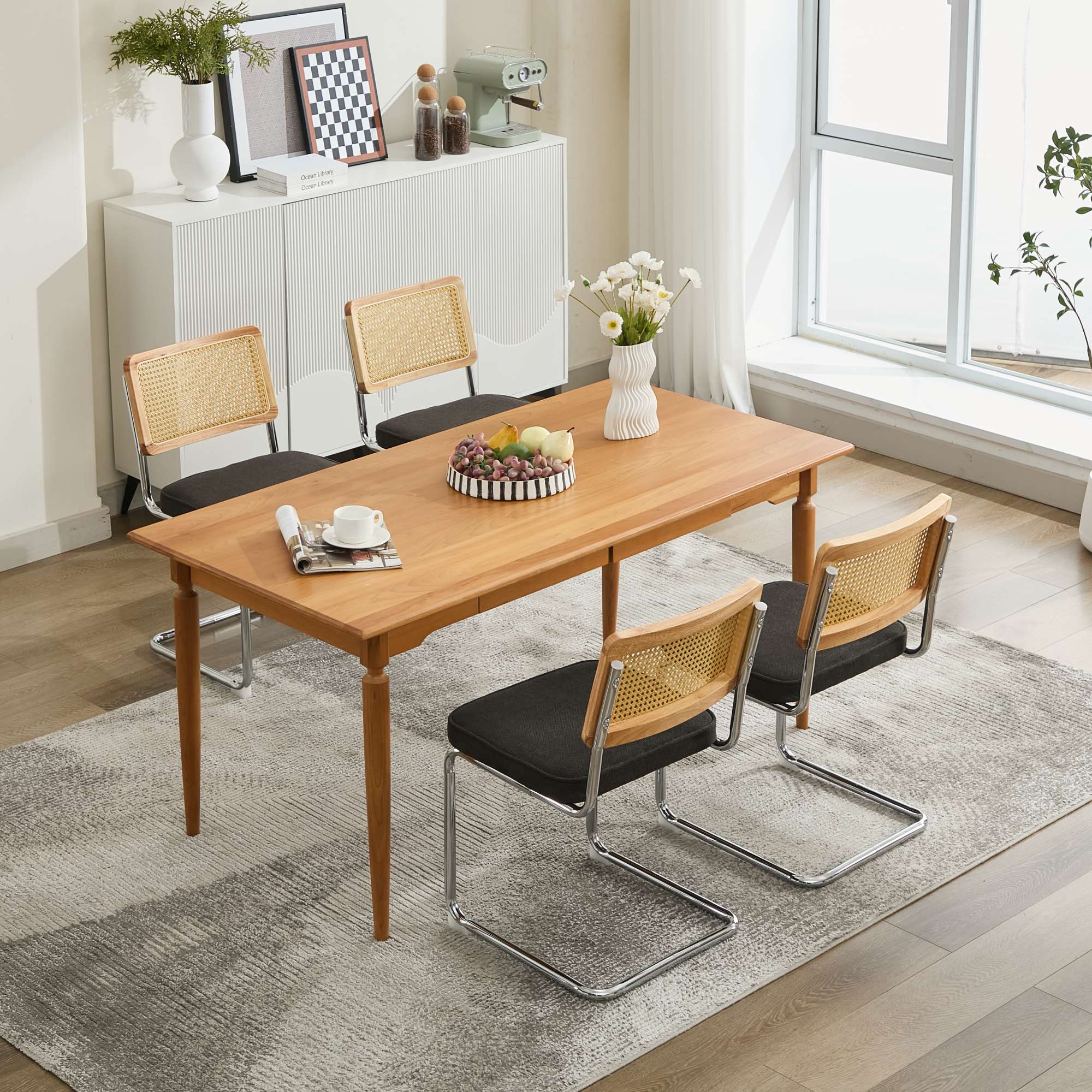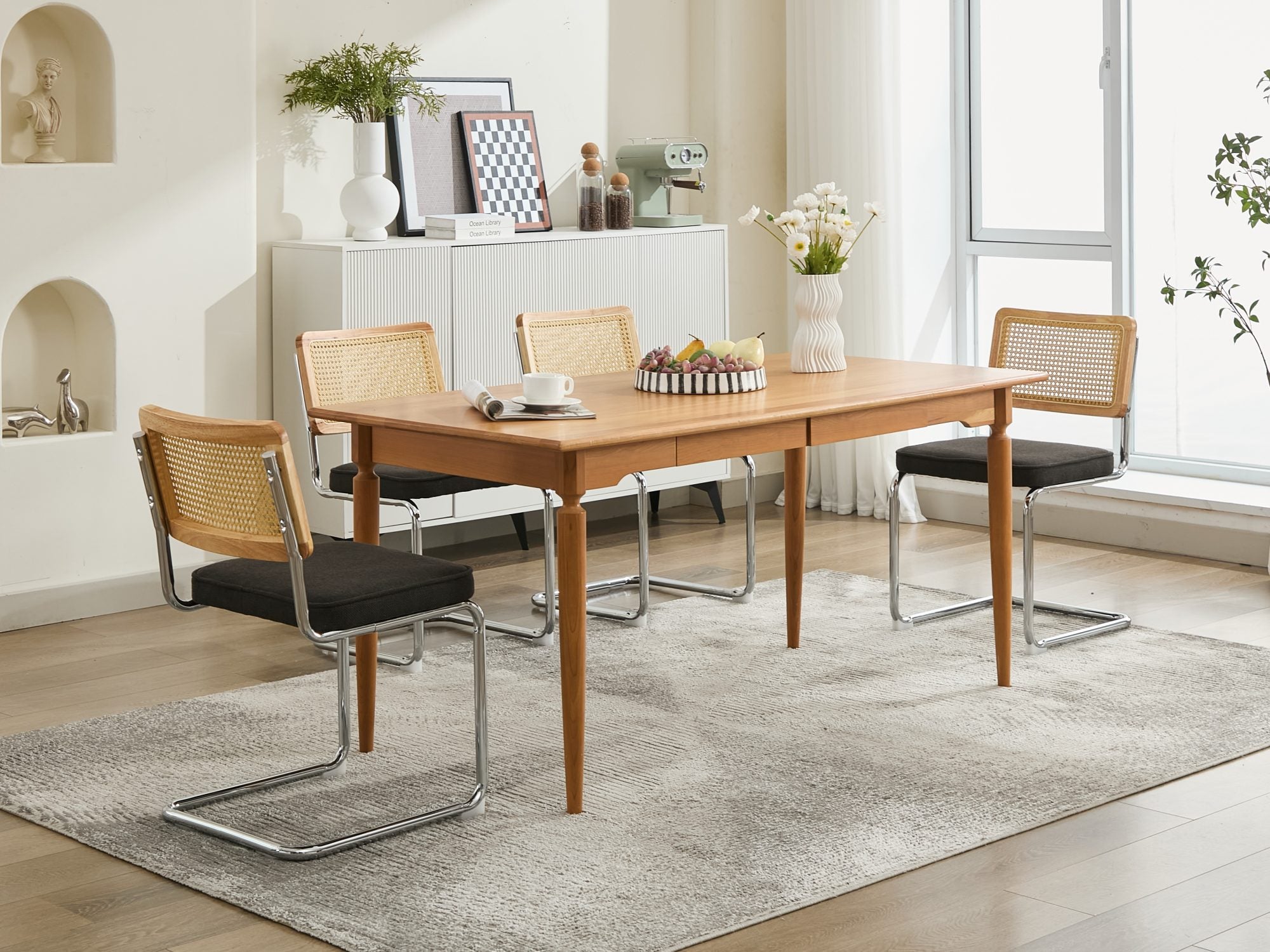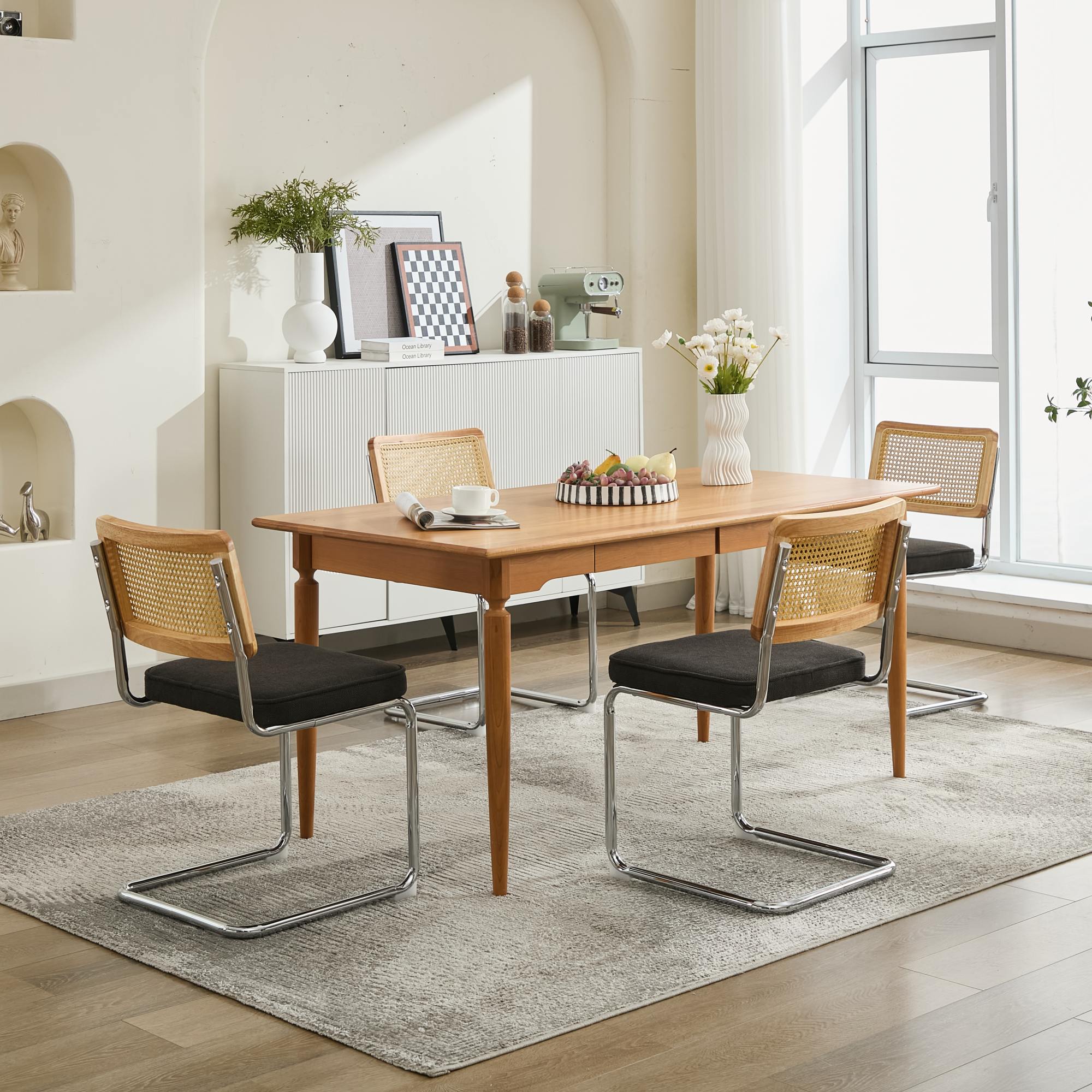 Elevate your dining or living space with these Mid Century Modern accent chairs that blend iconic Breuer-inspired design with contemporary comfort. Expertly crafted with a natural hand-woven rattan back, plush velvet-like linen upholstery, and a polished stainless chrome cantilever base, these chairs offer breathable support, a subtle springy recline, and durable construction for everyday use. Ideal as dining chairs, kitchen accent seats, or stylish additions to a reading nook, they deliver a refined silhouette and tactile richness that complements a range of interiors.