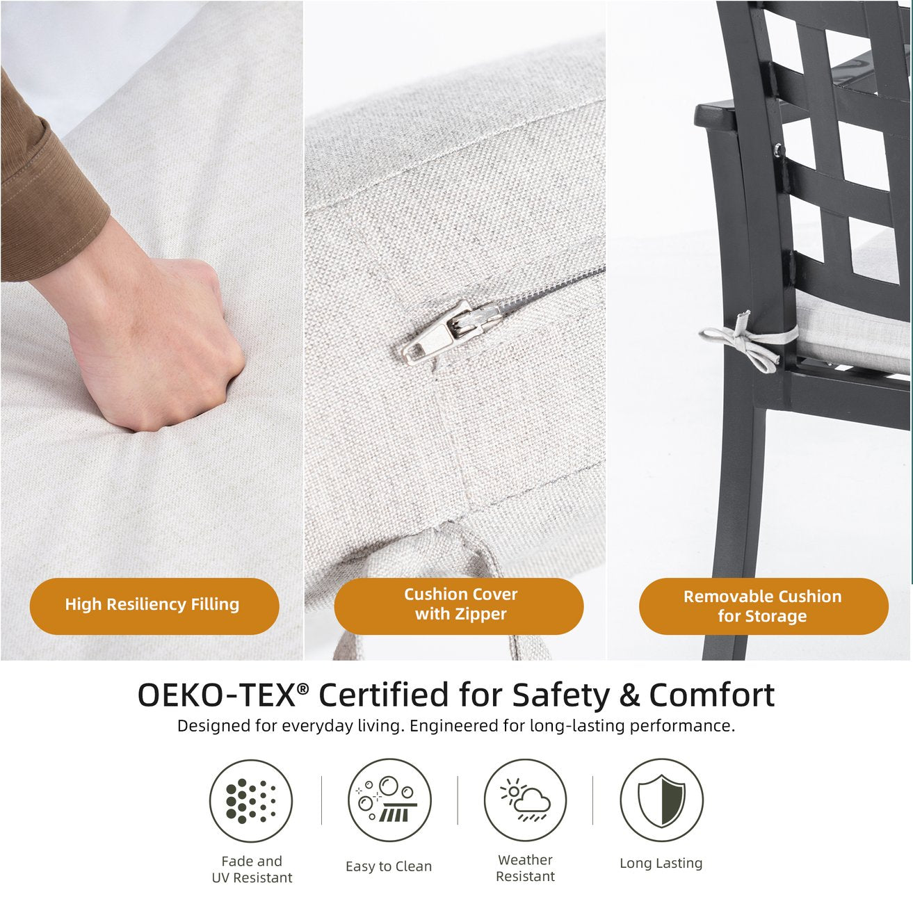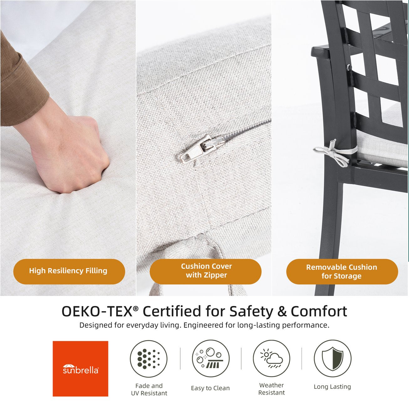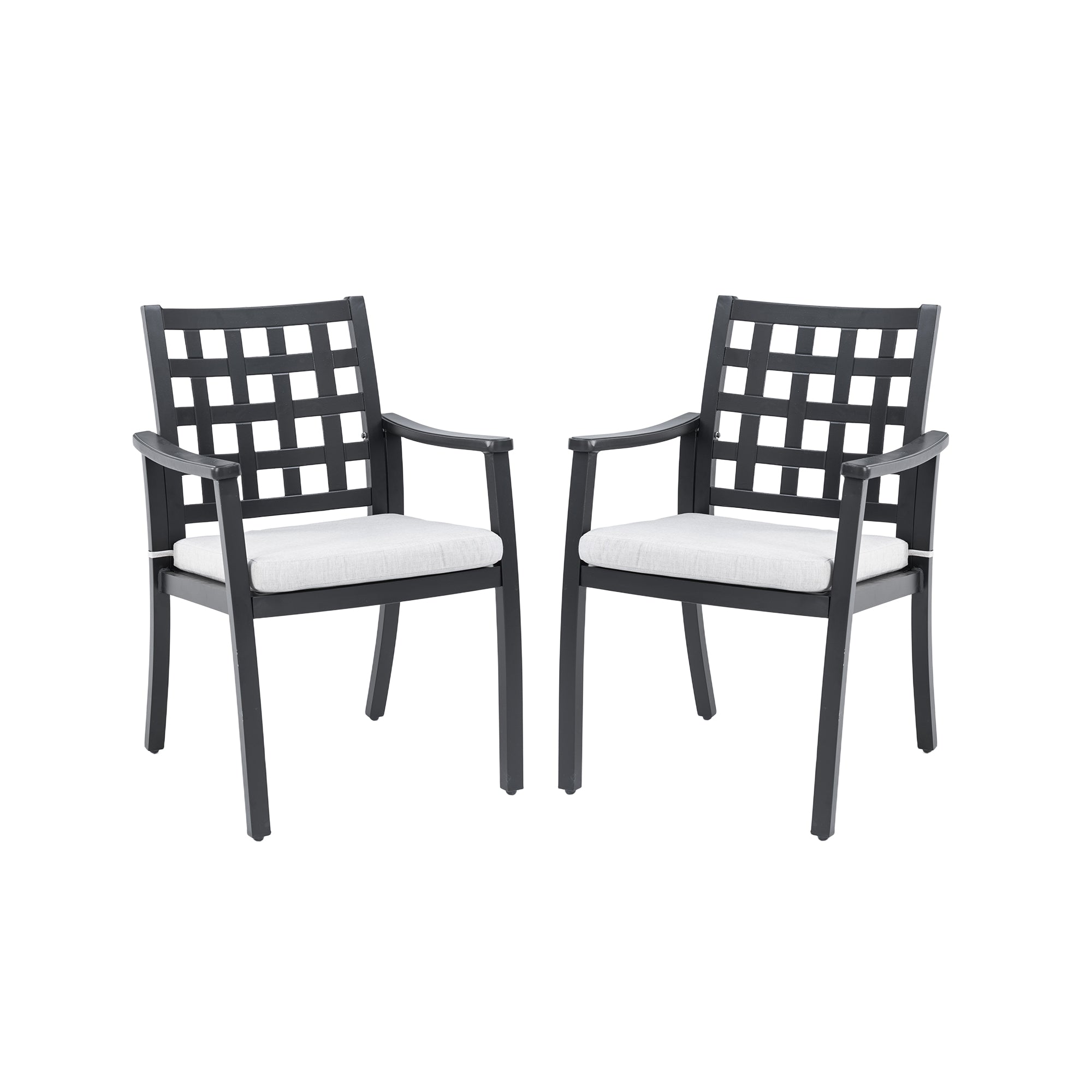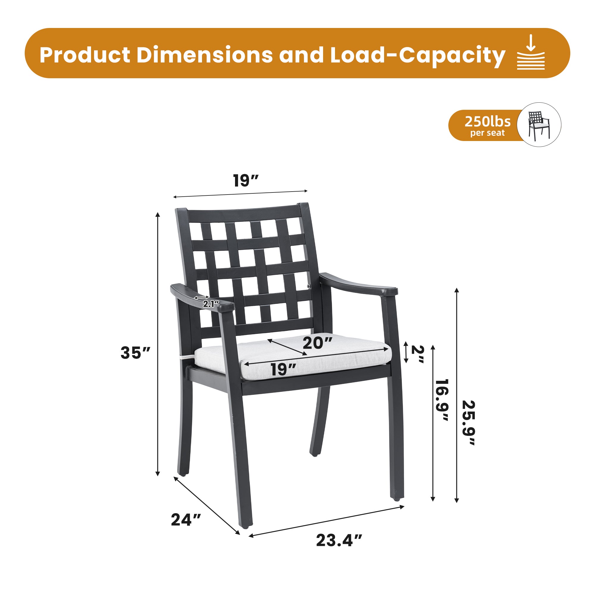 - Modern Classic Cast Aluminum Outdoor Patio Dining Chair with Textured Ember Black Finish, Ergonomic Design, and Removable Sunbrella Fabric Cushion ,Weather-Resistant and Durable