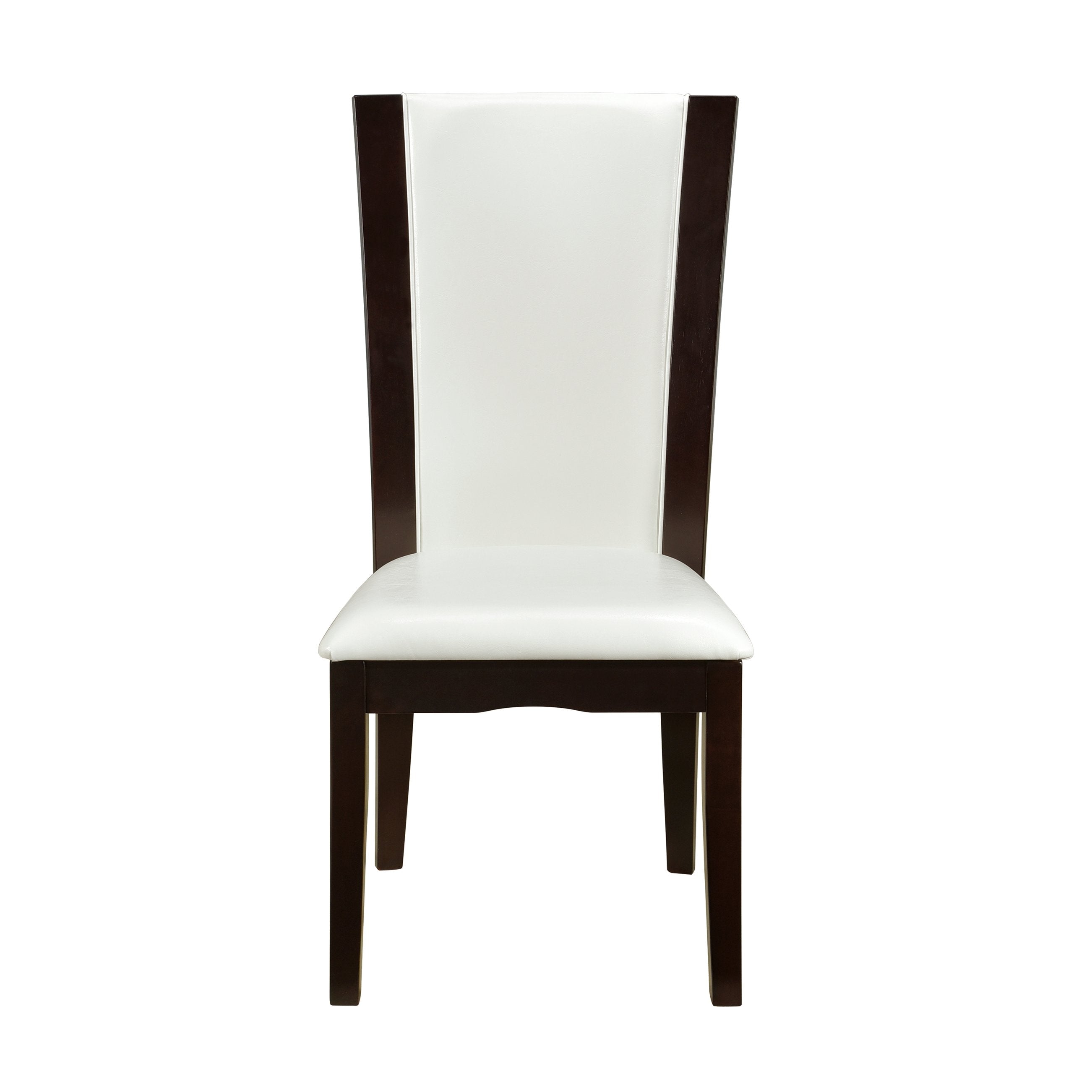 Elevate your dining space with the Daisy Collection side chairs — a blend of modern contemporary style and durable construction. These chairs pair clean, streamlined silhouettes with plush white faux leather upholstery and a rich espresso wood finish, creating a versatile look that complements both casual and formal dining rooms. Built with hardwood solids and veneers, they deliver comfortable seating and long-lasting performance.