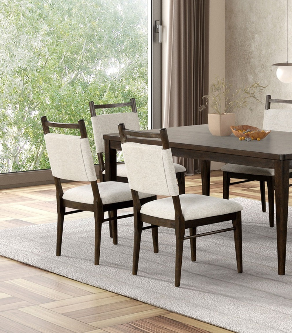 Elevate your dining space with a pair of modern dark walnut side chairs that blend contemporary style with everyday comfort. Designed for casual family meals and long gatherings, these chairs feature a warm walnut finish, plush upholstered seats, and sturdy rubberwood frames for lasting durability. Their clean lines and neutral upholstery make them versatile additions to both modern and transitional interiors.