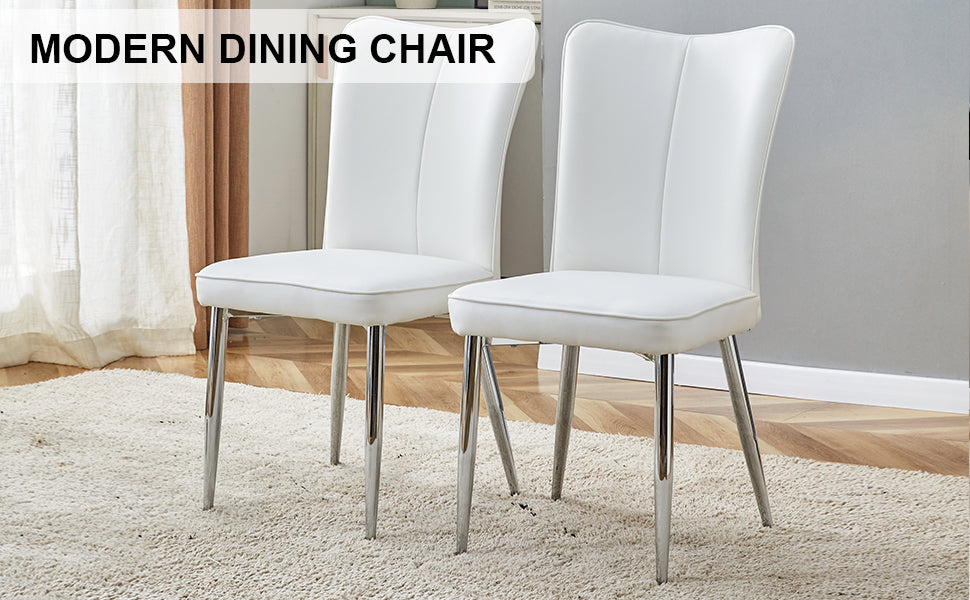 Elevate your dining room, office, or café with a pair of modern minimalist chairs that blend clean lines, comfortable ergonomics, and durable materials. These two white PU seats with silver metal legs offer a contemporary look that complements a variety of interiors while providing supportive seating for everyday use.