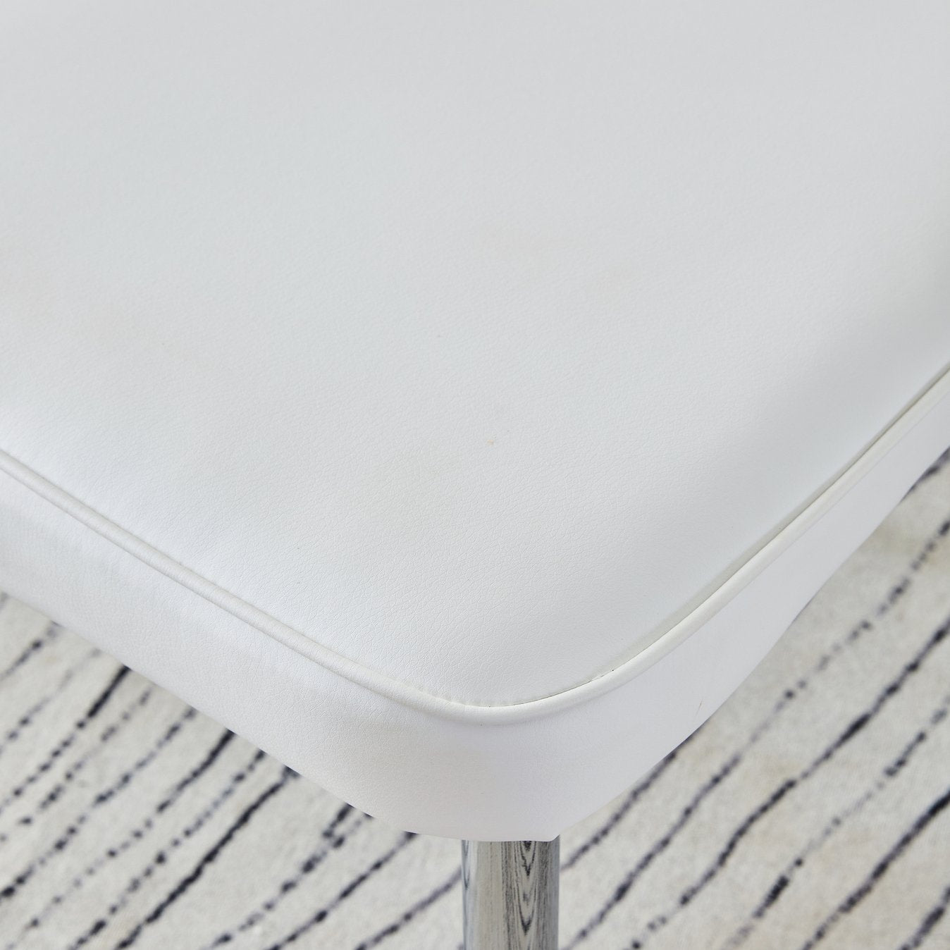 - Key materials: Smooth white PU leather upholstery with high-density foam padding for lasting comfort; silver-finish metal legs for stability and a sleek aesthetic.