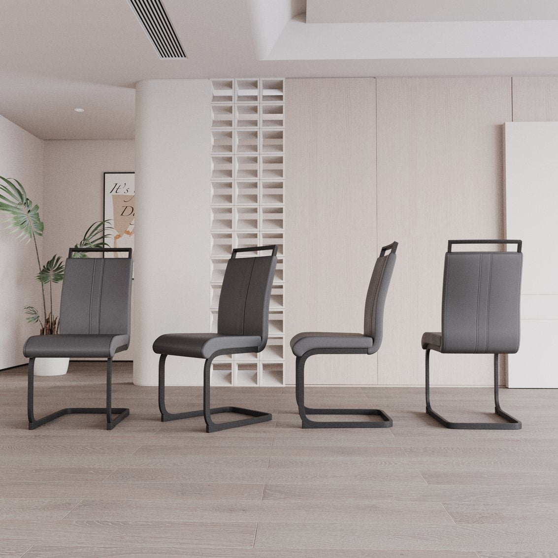 Give your dining area a contemporary upgrade with these Modern PU Faux Leather High-Back Side Chairs. Combining sleek C-shaped metal legs with plush, high-quality faux leather upholstery, this set of four chairs delivers both style and comfort for everyday dining, entertaining, or working from home. Thoughtful details—such as thickened seat cushioning, ergonomic high backs, and anti-scratch feet—ensure lasting comfort and protection for your floors, while the versatile silhouette complements modern, industrial, and minimalist interiors.