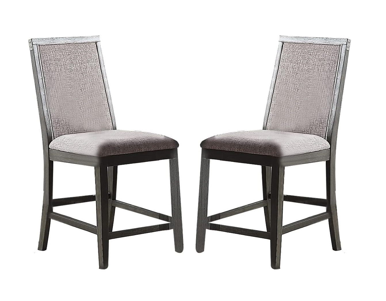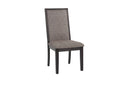 Refresh your dining space with this modern set of 2 upholstered side chairs that blend contemporary lines with comfortable cushioning. The soft grey fabric and dark wood-tone trim create a versatile look that pairs well with a variety of table styles, while the foam cushions and supportive back ensure relaxed meals and everyday use.
