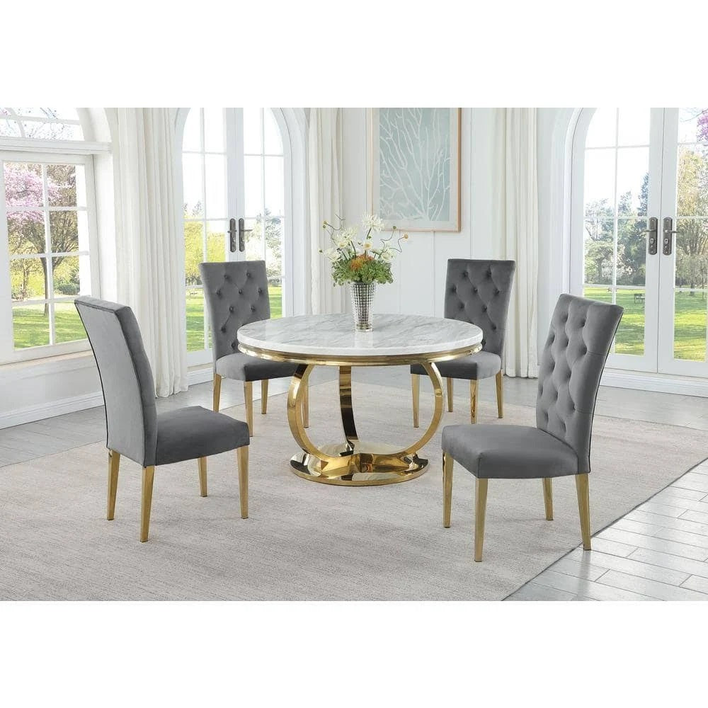 - Frame & legs: Stainless steel legs with gold finish for durability, stability, and a contemporary glam look