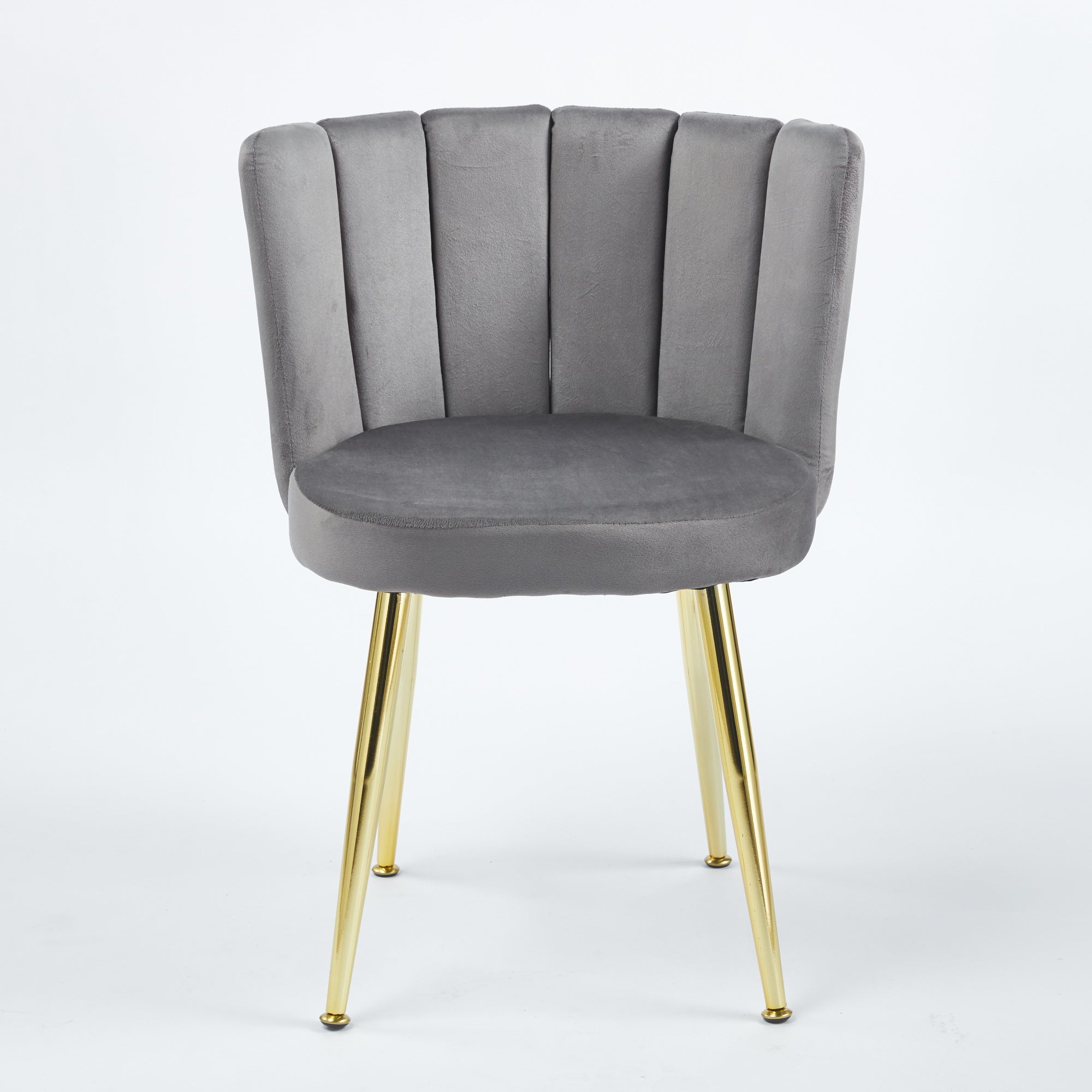 Upgrade your dining or lounge area with this stylish set of 2 modern grey chairs that blend comfort, durability, and contemporary design. Upholstered in soft short-pile velvet and supported by sturdy golden-finish iron legs, these chairs offer an inviting seat for everyday dining, casual gatherings, or café seating—while remaining easy to assemble and maintain.