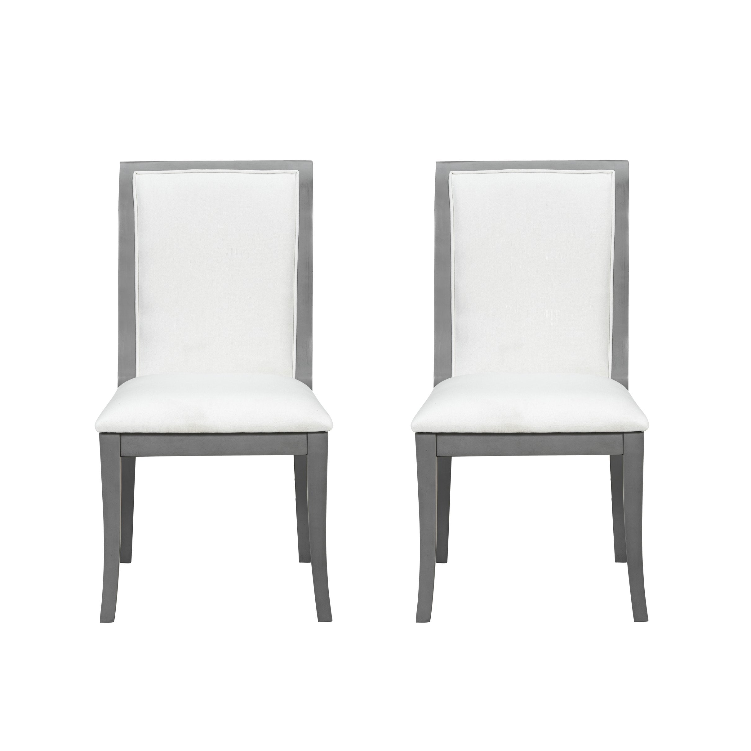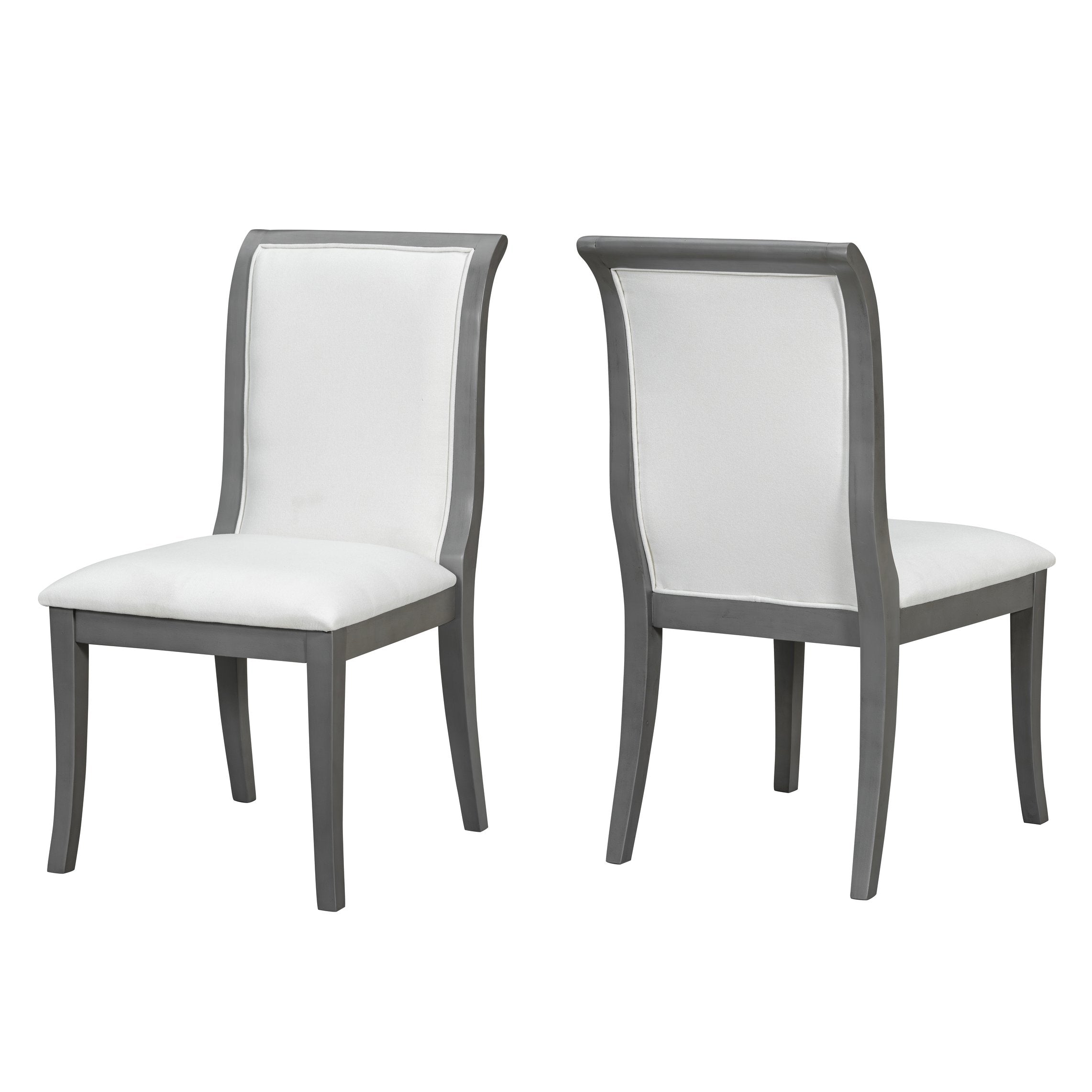 Elevate your dining space with these traditionally styled upholstered side chairs that blend classic curves and a refined oak-gray finish. Designed for comfort and durability, this two-piece set is ideal for formal dining, casual meals, or as accent seating in an entryway or bedroom.
