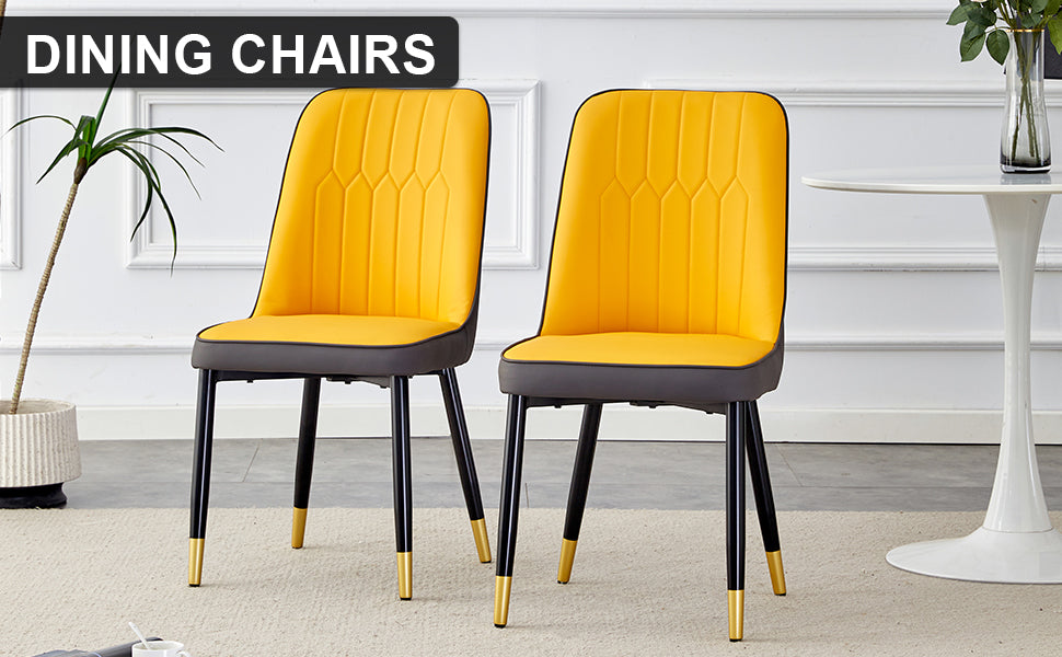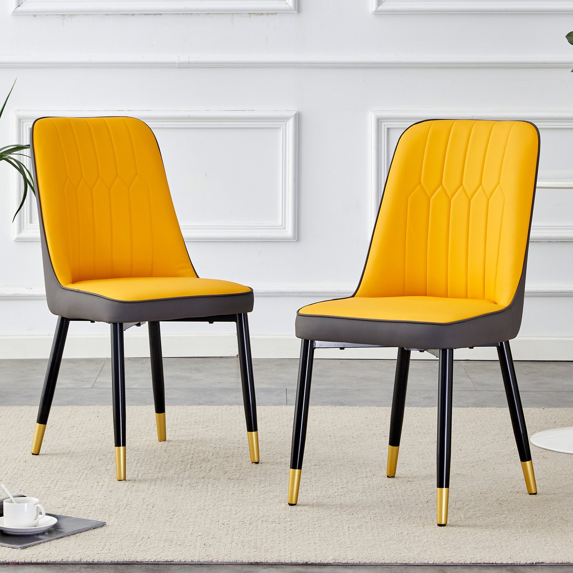Brighten your dining or living space with this modern 2-piece chair set that blends bold yellow and dark gray stitching with sleek, durable construction. Designed for comfort and everyday use, these chairs offer a contemporary silhouette and easy assembly—perfect for kitchens, dining rooms, and casual seating areas.