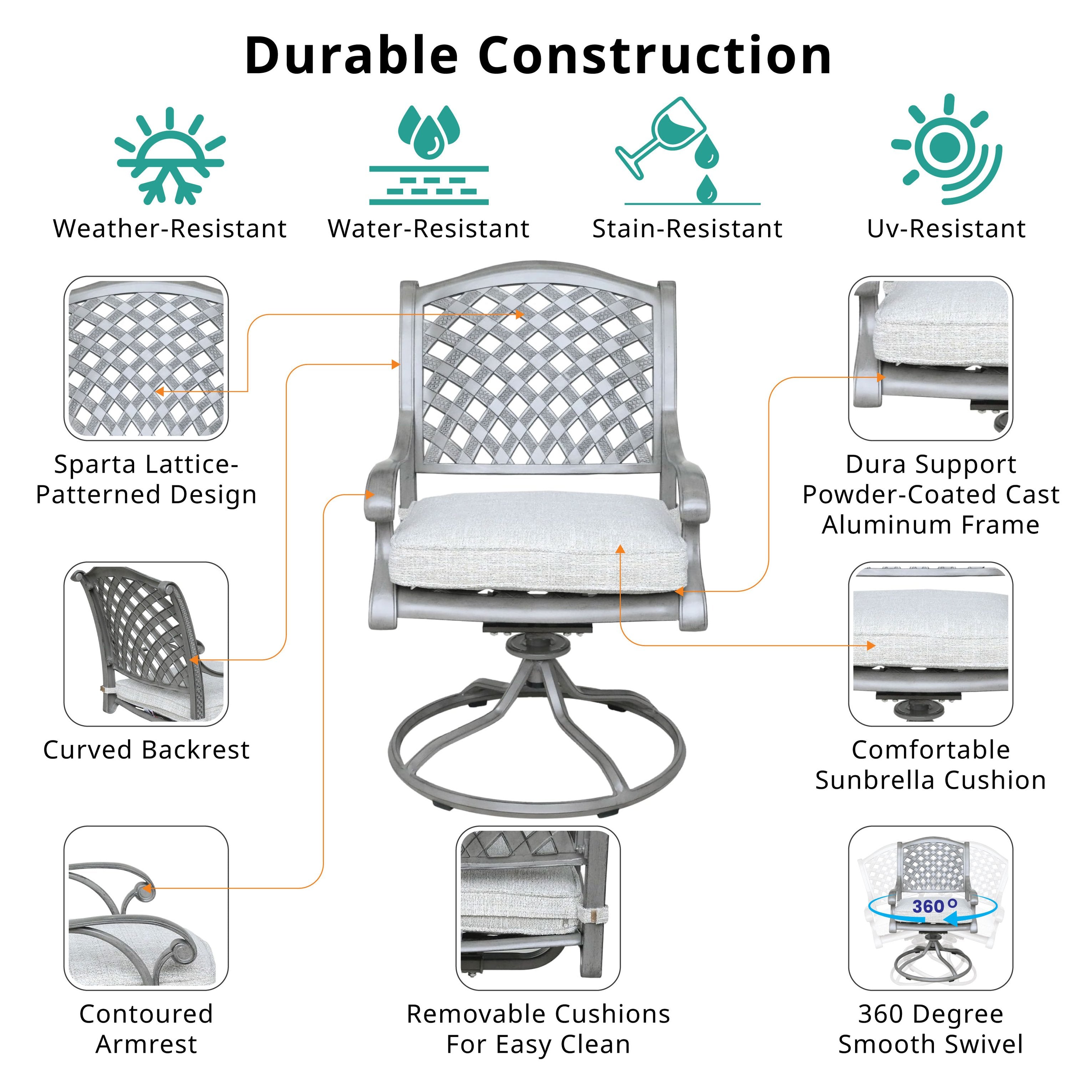 - COMFORT AND DURABILITY: Experience ultimate comfort and long-lasting durability with our outdoor swivel rocker dining chairs. They are designed to provide maximum relaxation and are built to withstand the elements.