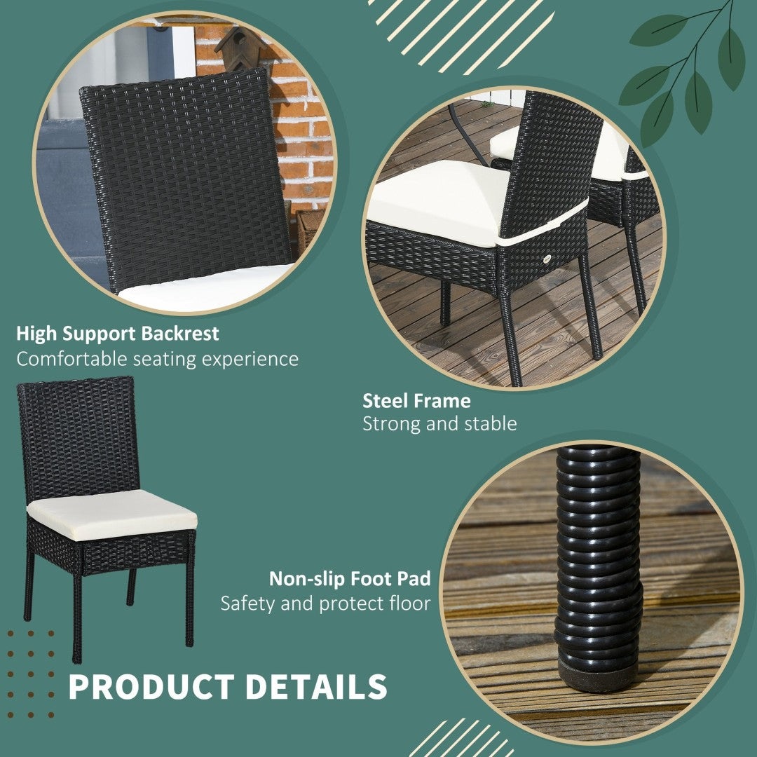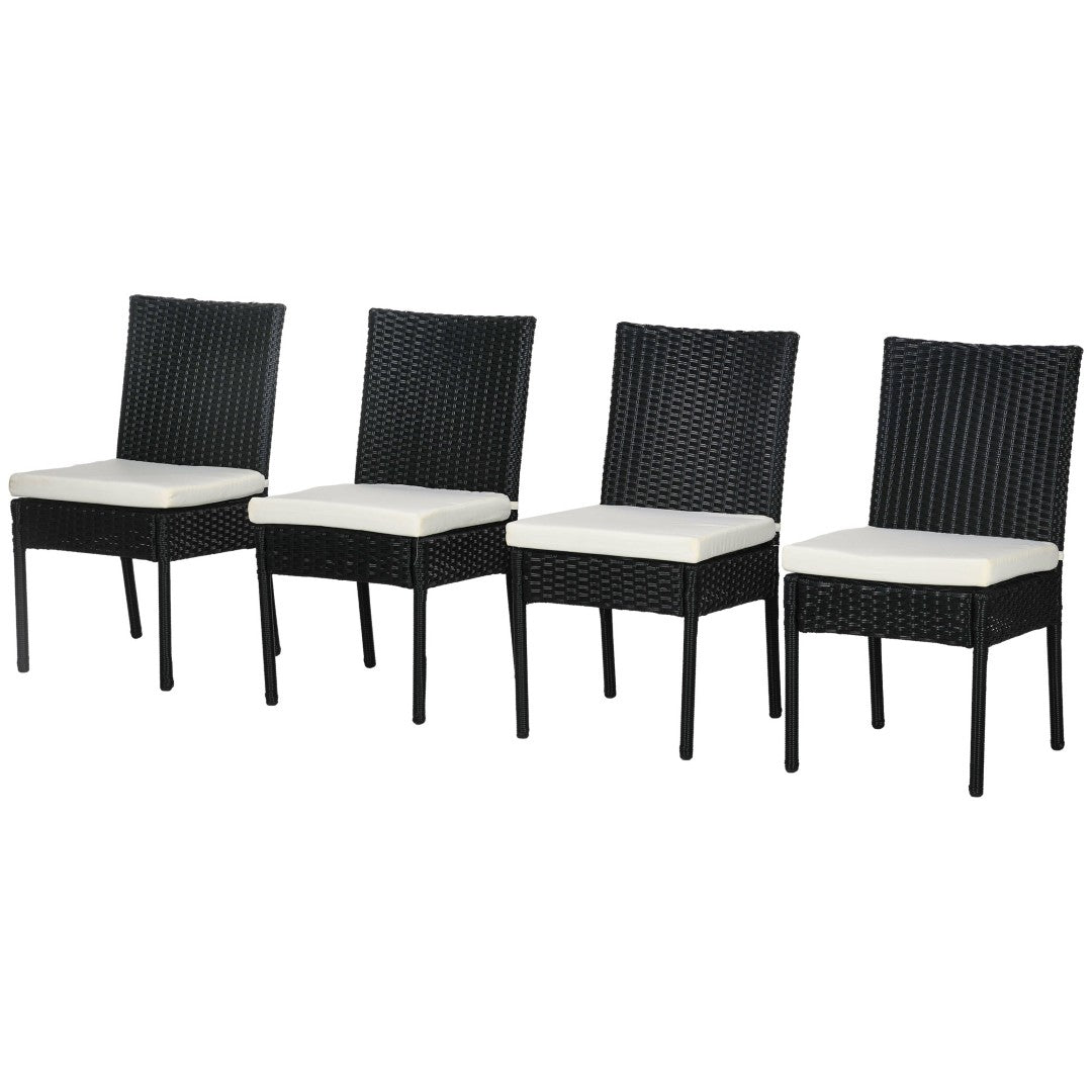 Bring relaxed, durable style to your outdoor dining area with this set of four cream-white PE rattan chairs. Combining weather-resistant materials, stable steel reinforcement, and plush, zip-off cushions, these chairs deliver comfortable, low-maintenance seating for patios, decks, porches, and gardens—perfect for everyday meals or entertaining guests.