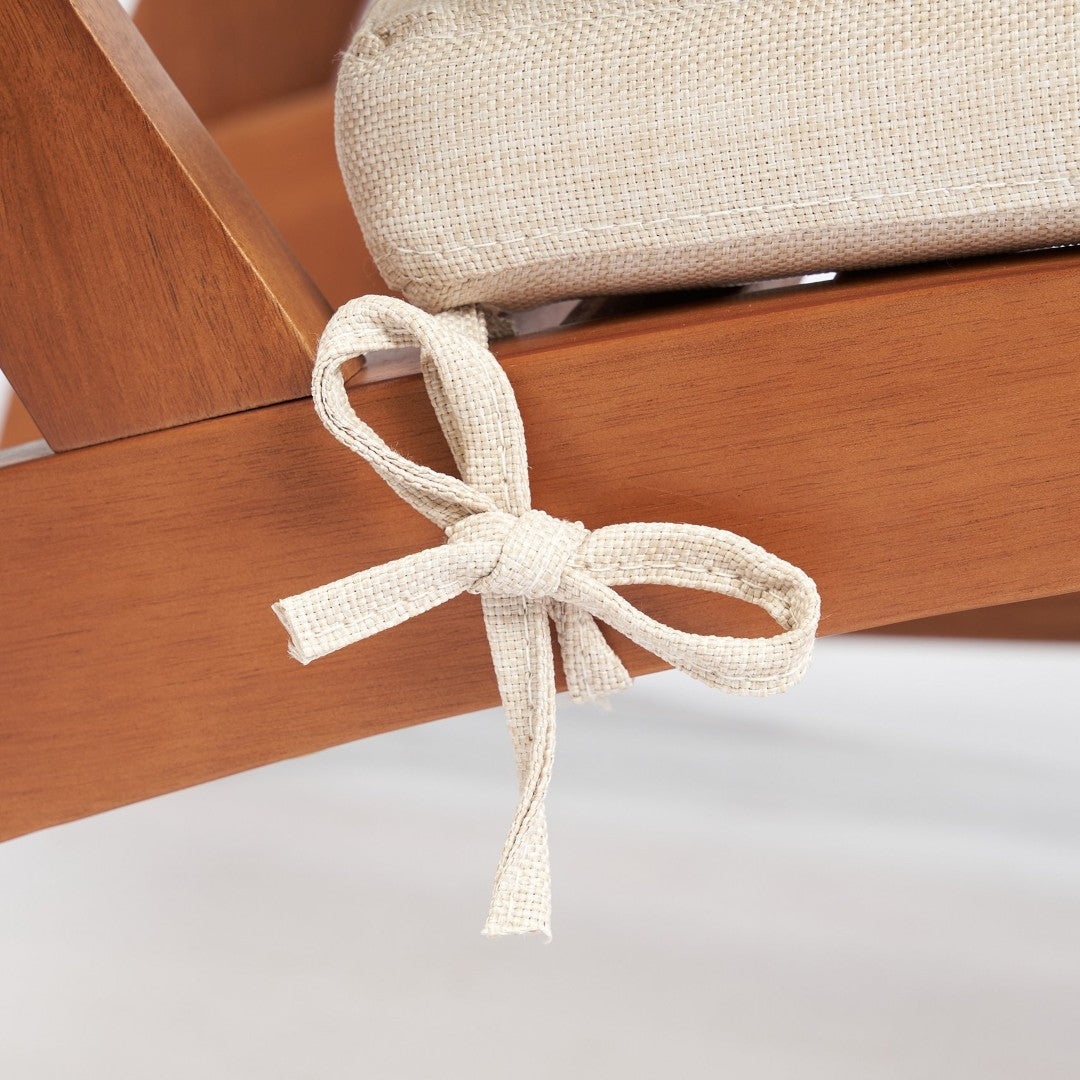 - Comfort features: Slatted seat and backrest improve airflow; padded cream-white cushions add plush support