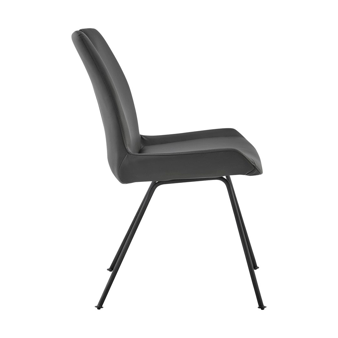 Upgrade your dining area with these contemporary gray dining chairs that blend modern style with everyday comfort. Thoughtfully designed for support and durability, the set of two chairs features a sleek powder-coated frame and easy-care faux leather upholstery—perfect for family meals or entertaining guests.