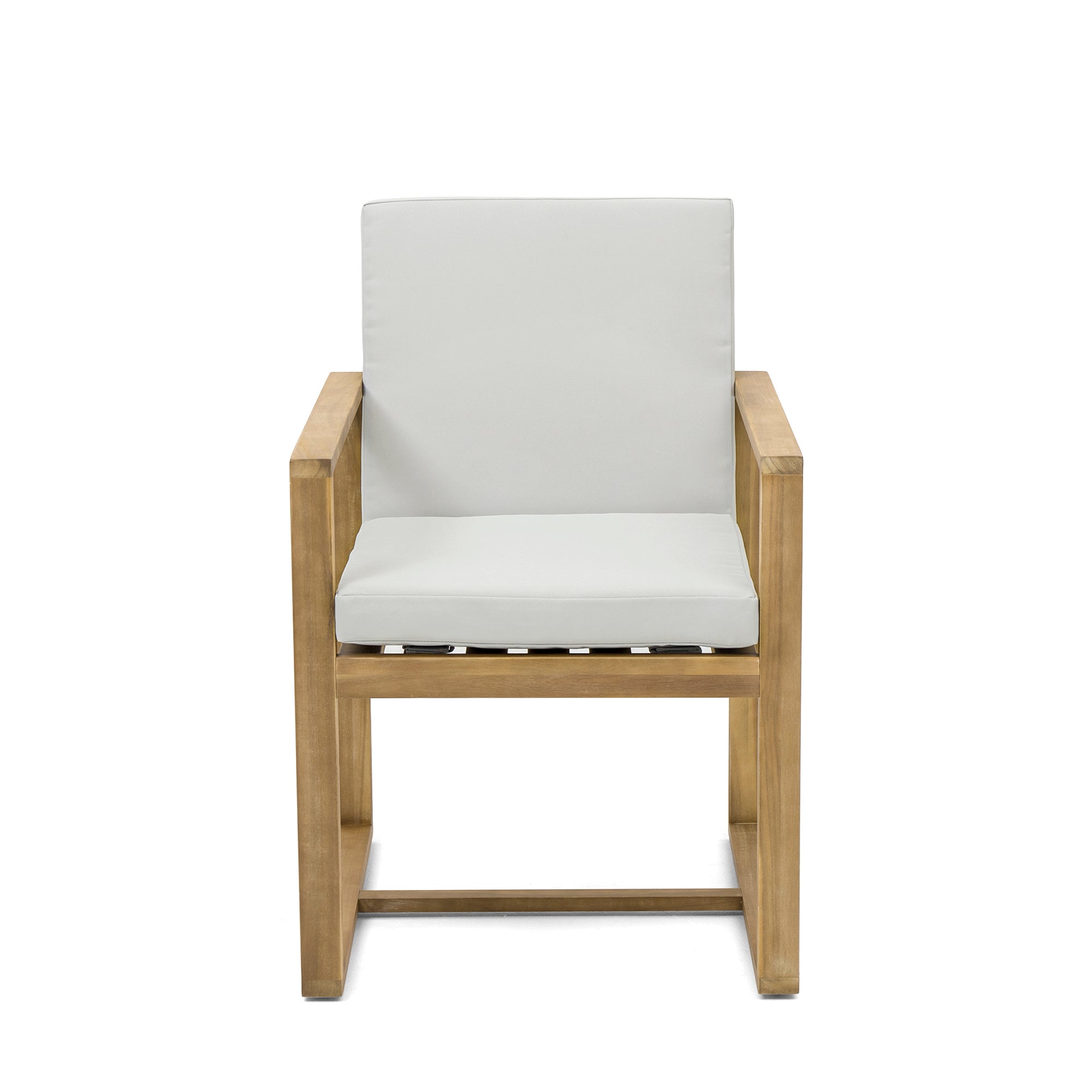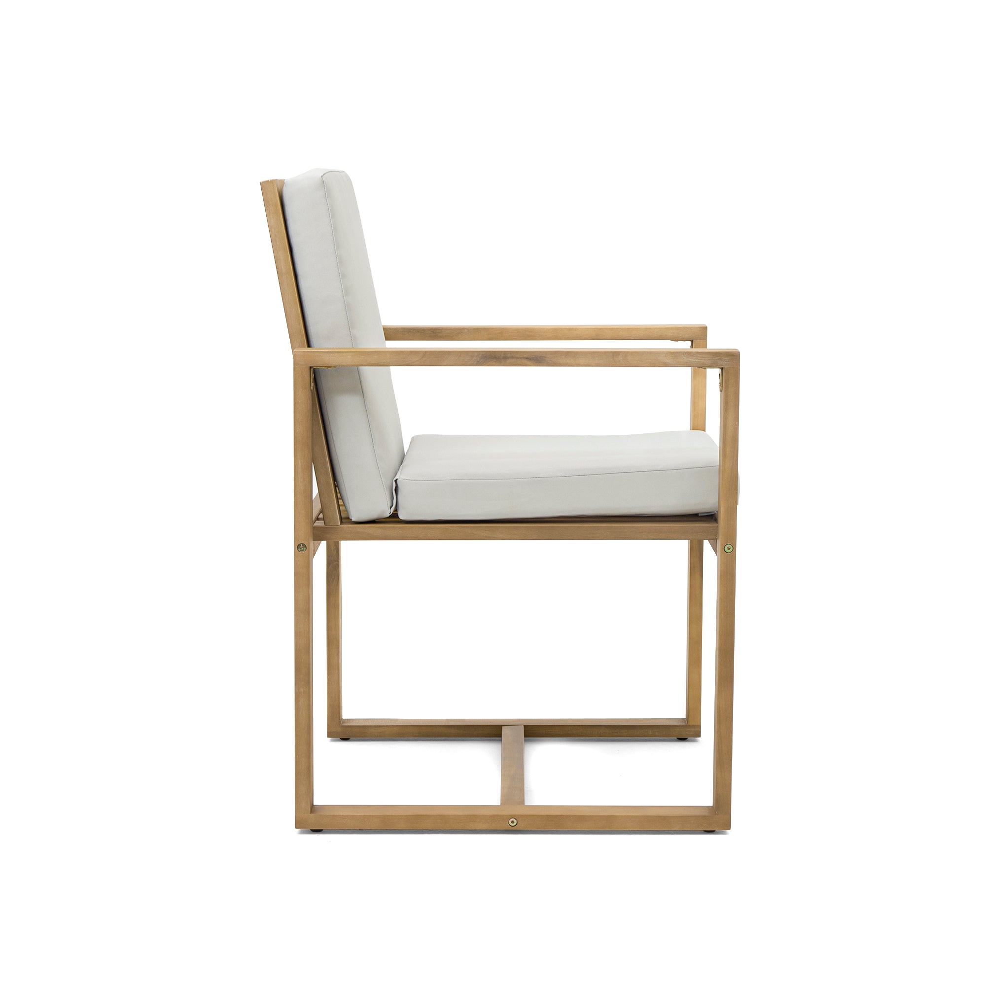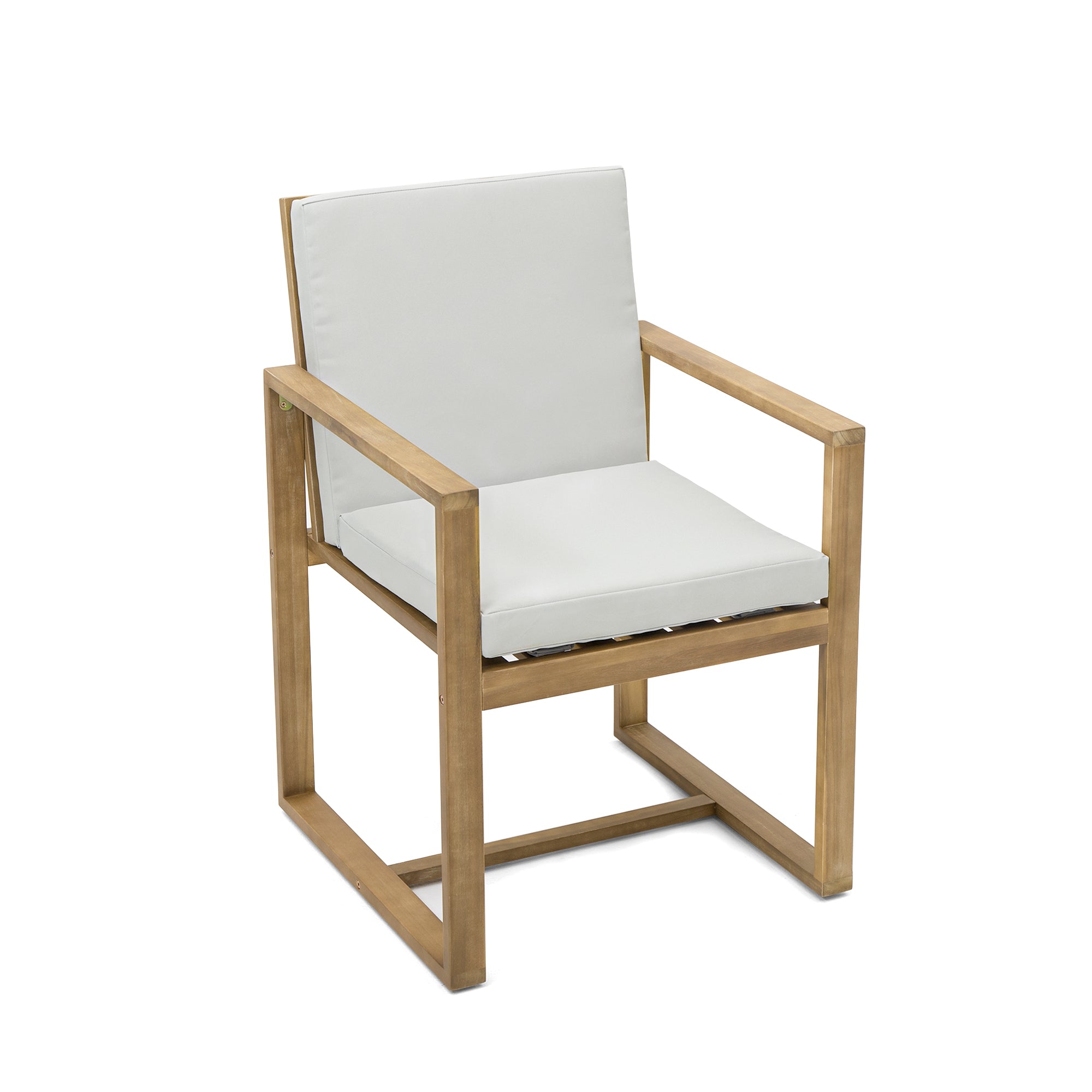 Bring comfort and timeless style to your outdoor dining area with this light teak patio chair set. Crafted from durable acacia wood and finished in a warm Light Teak tone, each chair pairs a supportive wooden frame with removable, quick‑care cushions in Light Beige Grey for easy maintenance. The design balances solid construction and everyday comfort—ideal for patios, backyards, and garden dining.