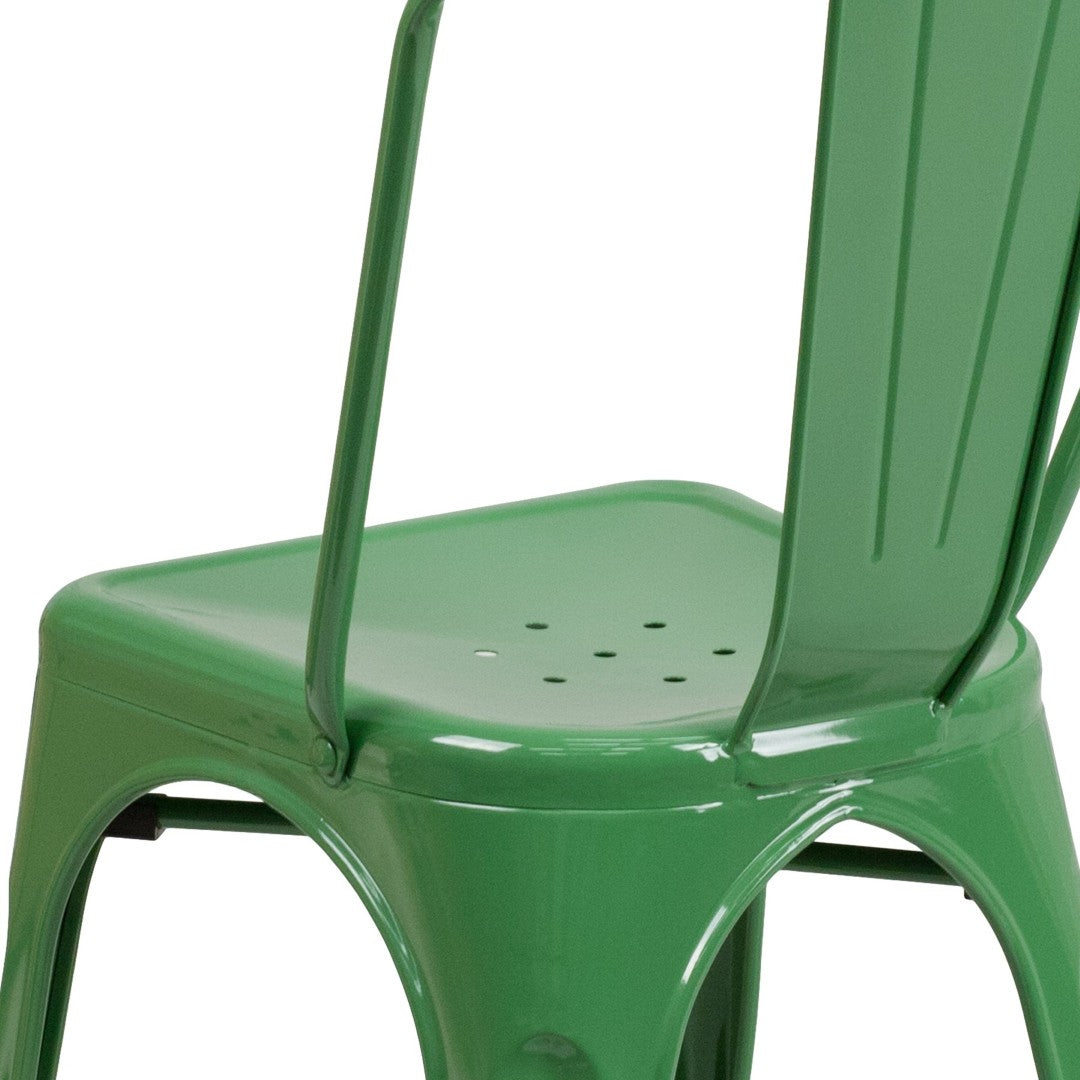 Bring durable, versatile seating to your home, patio, or commercial space with this vintage bistro–inspired metal stackable chair. Thoughtfully engineered for high-traffic use, it combines industrial styling with practical features—weather-resistant galvanized steel, comfortable curved slat back support, and convenient stackability—so you can serve guests confidently indoors or out. No assembly is required, and the rugged finish and protective details help ensure long-lasting performance in both residential and business settings.