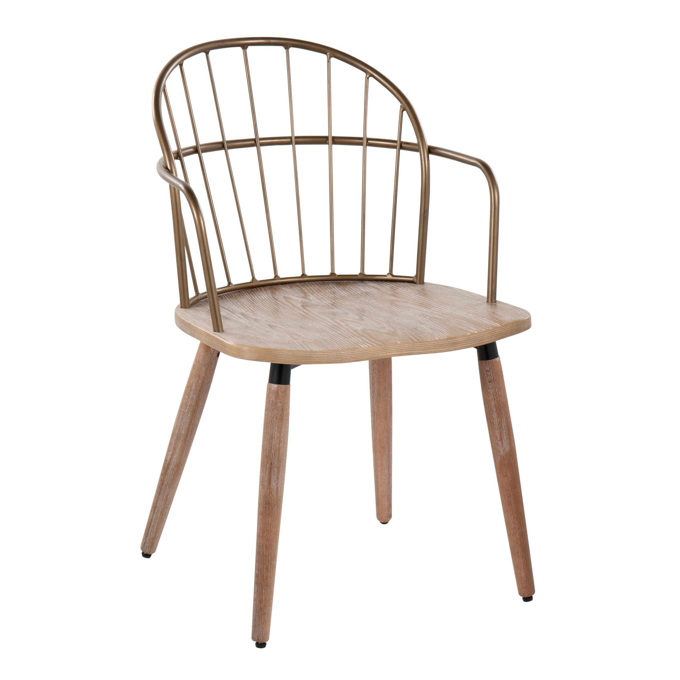 Bring timeless farmhouse charm and sturdy industrial flair to your dining space with this updated spindle-back chair. Designed for everyday use and visual appeal, it pairs a whitewashed solid wood seat and legs with antique copper-finish metal back and armrests for a balanced, versatile look that complements modern farmhouse, rustic, and industrial interiors.
