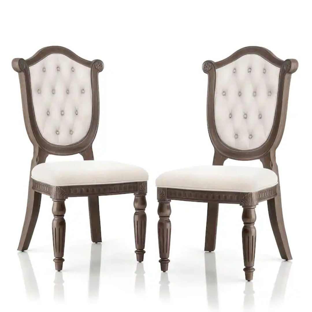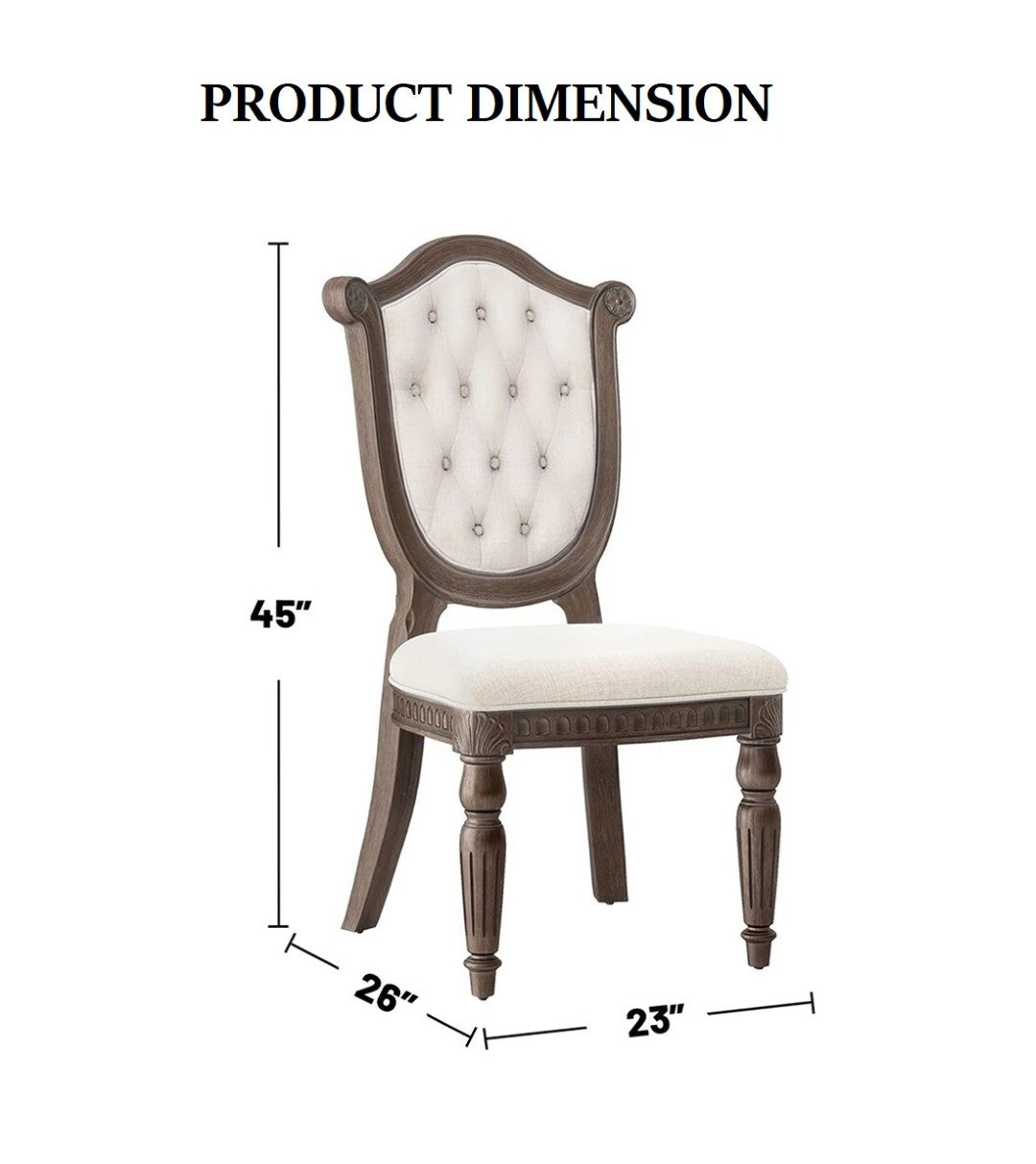 Bring rustic charm and modern comfort to your dining or living space with this 2-piece side chair set. Each chair pairs a diamond-tufted back and fluted front legs with a warm weathered oak and beige finish, offering a sophisticated yet casual look that complements farmhouse, coastal, and transitional interiors. Built for everyday use, the set balances supportive seating, durable construction, and easy assembly to create a cohesive and inviting dining arrangement.