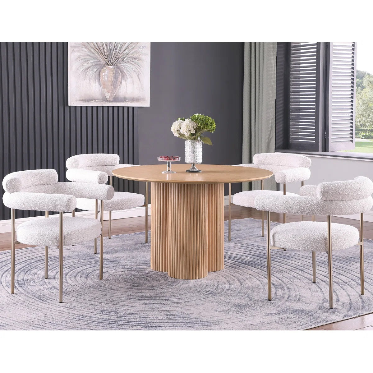 - Upholstery: Soft, textured boucle fabric available in cream (also offered in black).