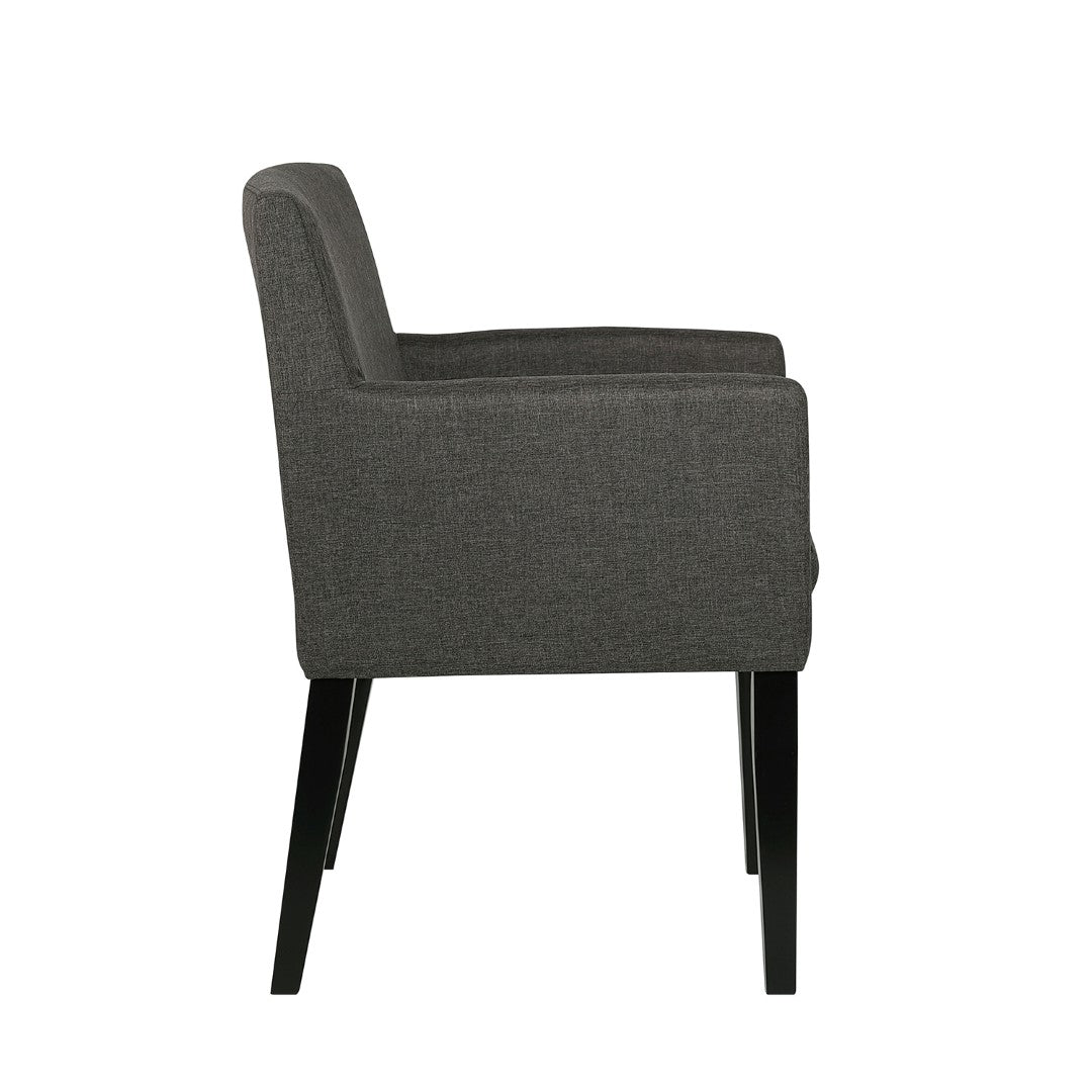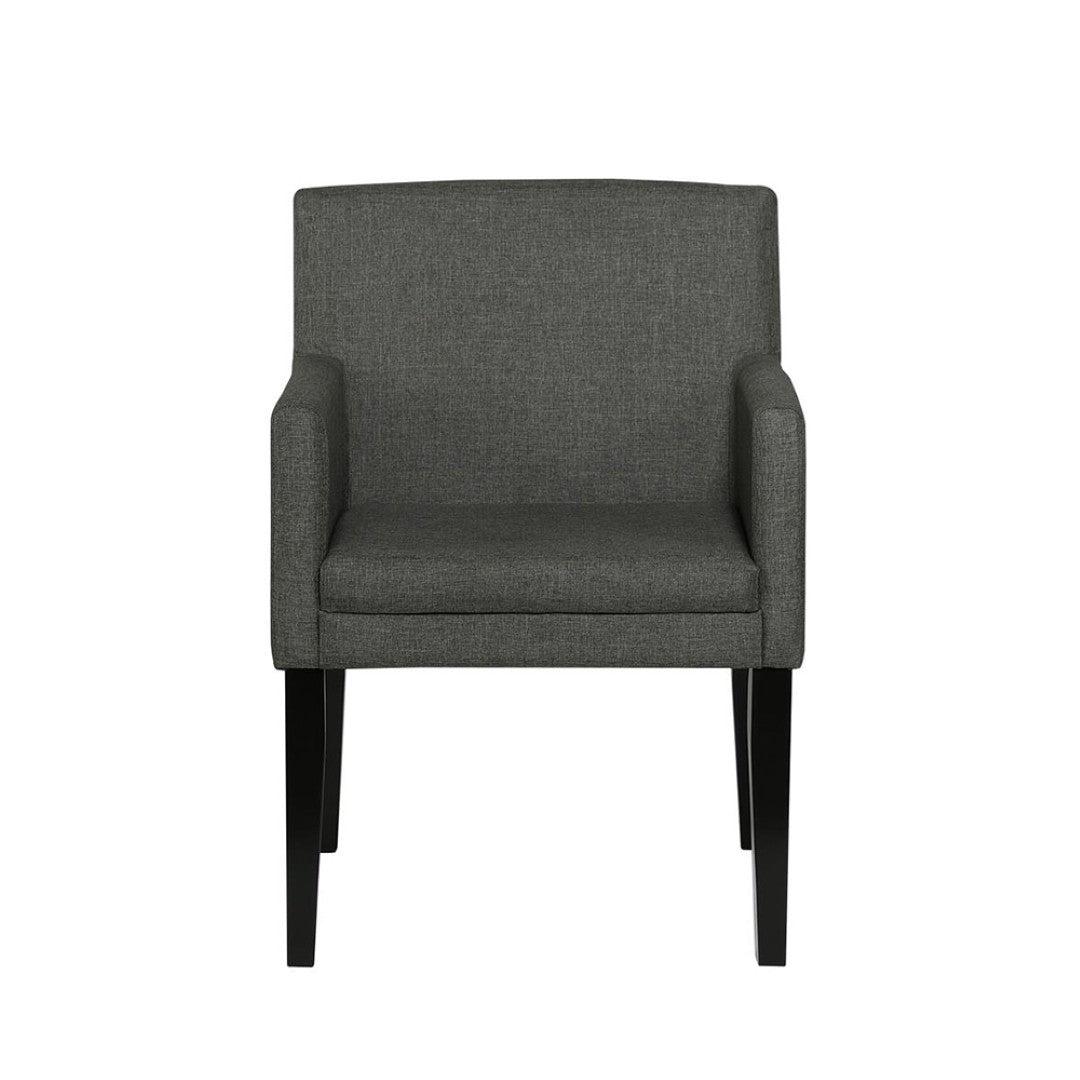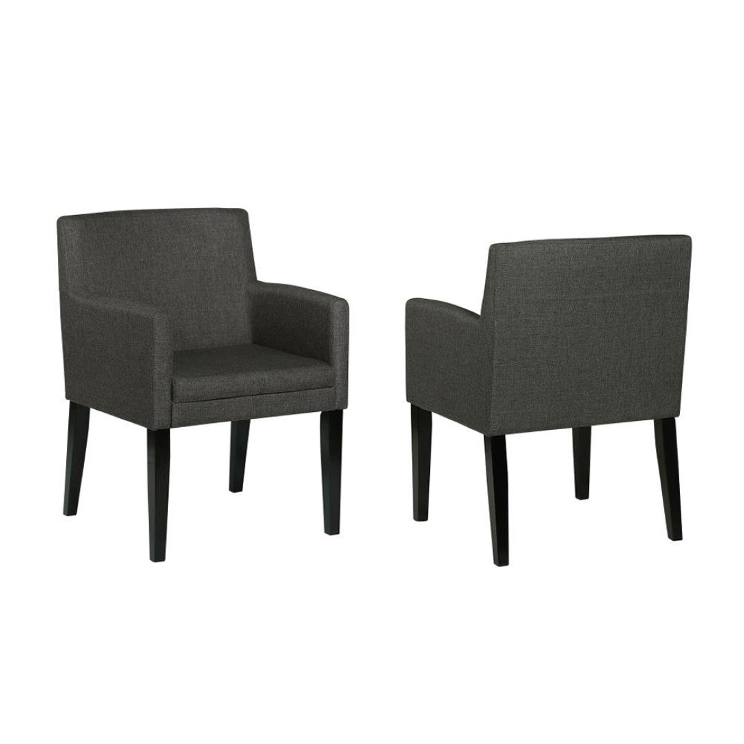 Bring mid-century charm and everyday comfort to your dining area with this set of two charcoal grey upholstered arm chairs. Thoughtfully designed for casual dining and extended conversations, the chairs combine supportive cushioning, durable fabric, and a clean silhouette to complement modern and transitional interiors alike.