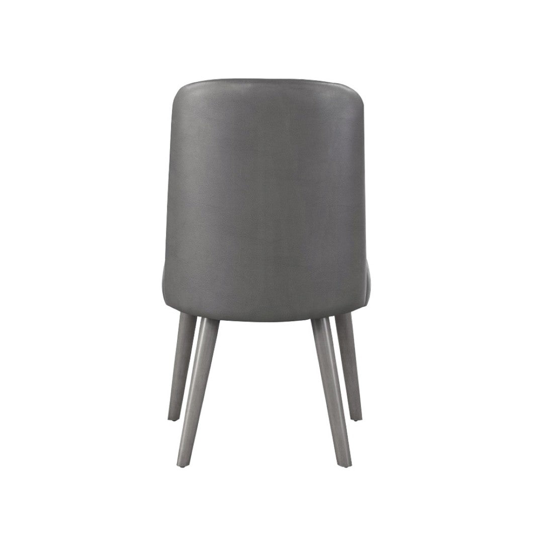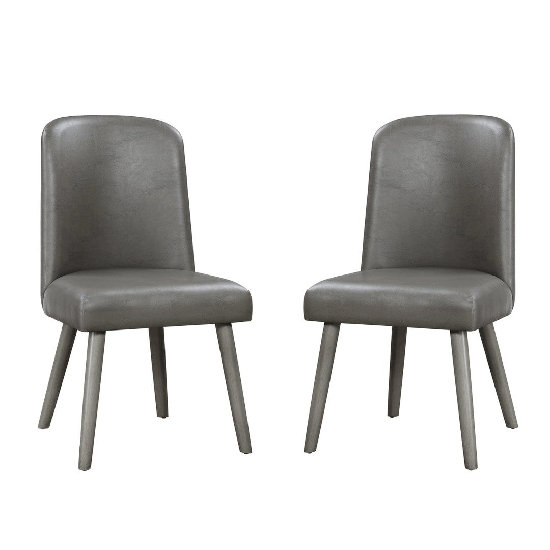 Bring modern comfort and classic style to your dining area with this set of two cushioned side chairs. Upholstered in soft gray PU and supported by gray oak–finished splayed spindle legs, these chairs combine durable materials with a timeless silhouette to suit contemporary and transitional interiors. The padded seat and back provide all-day comfort for meals, work, or conversation, while the sturdy wooden base ensures stable support.