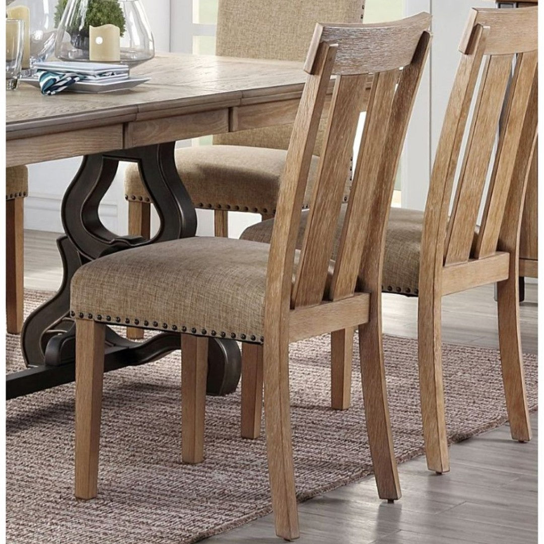 Invite timeless comfort and subtle elegance to your dining room with this set of 2 fabric-upholstered chairs. Each chair pairs a soft, durable fabric seat and cushion with a slatted back and refined nailhead trim for an updated classic look that complements both traditional and transitional interiors. Thoughtfully designed for everyday use, these chairs provide sturdy support and a welcoming place for family meals or casual gatherings.