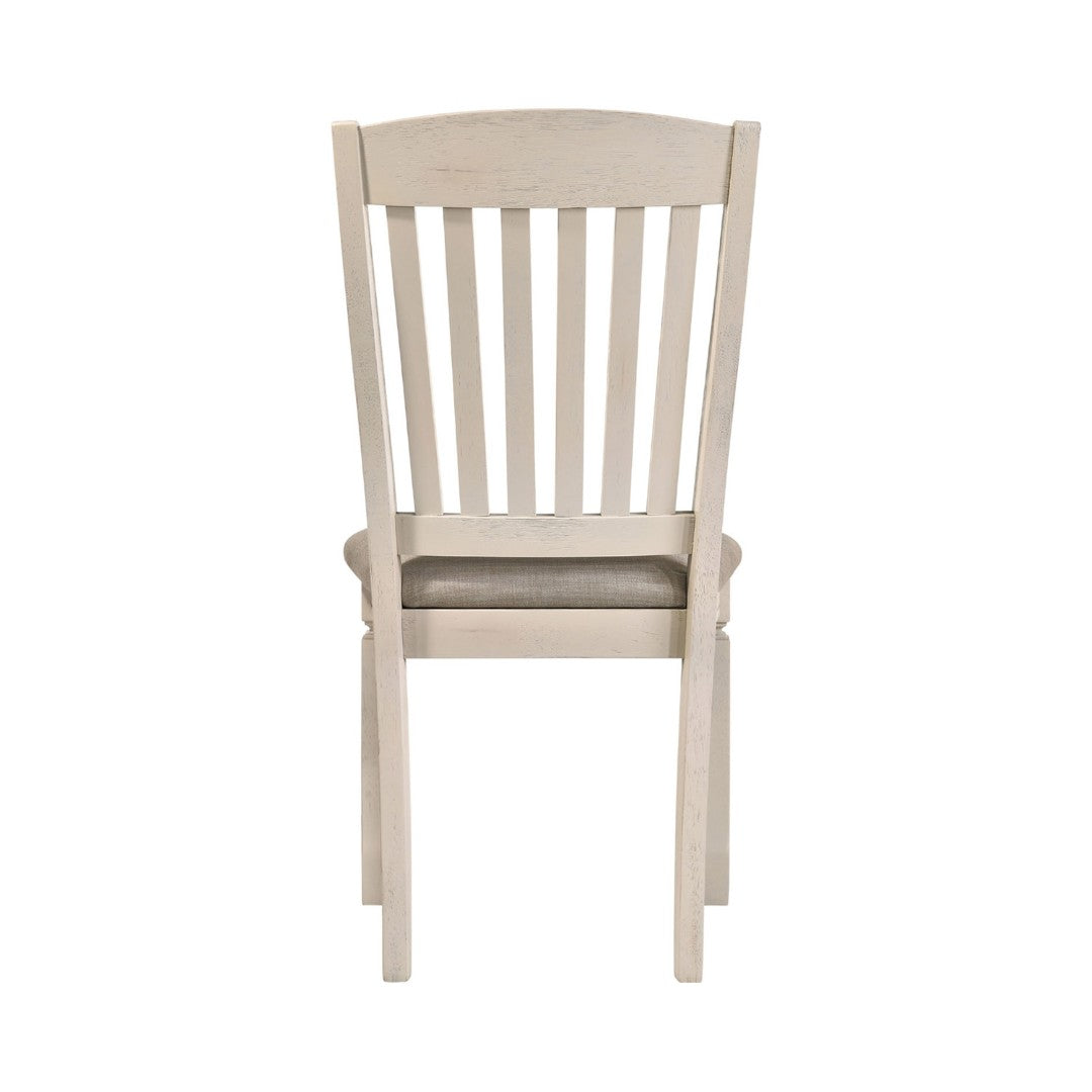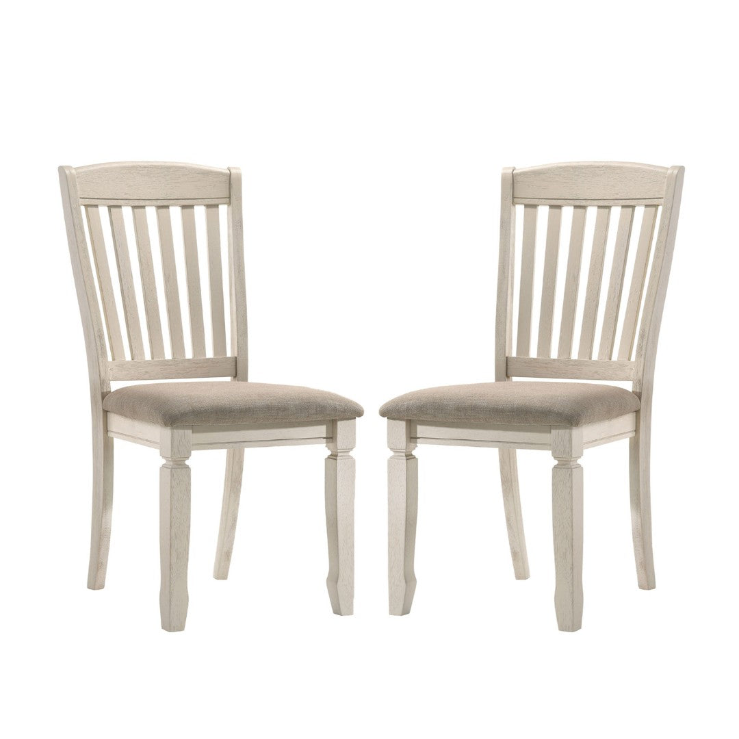 Bring timeless farmhouse charm to your dining area with this set of 2 slat-back side chairs. Upholstered in tan fabric with a weathered oak and cream finish, these chairs combine classic styling with everyday comfort — ideal for family meals, casual entertaining, or as accent seating in a variety of interiors.