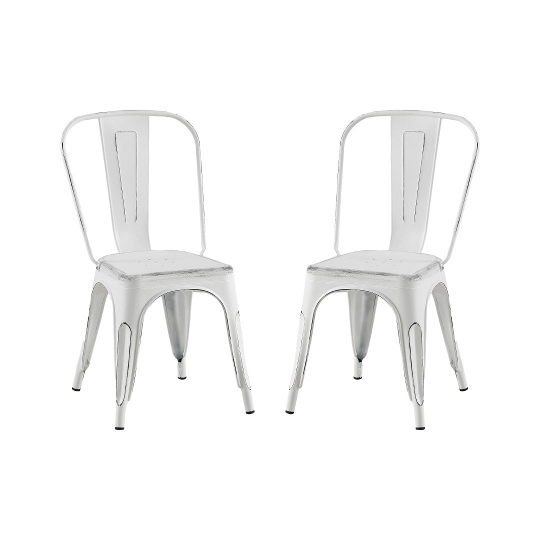 - What's Included: Set of 2 Modern Sanded Matte White Metal Dining Room Kitchen Bar Chairs.