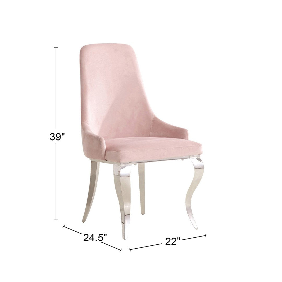 - Upholstery: Soft, luxurious pink velvet for a warm, elegant finish